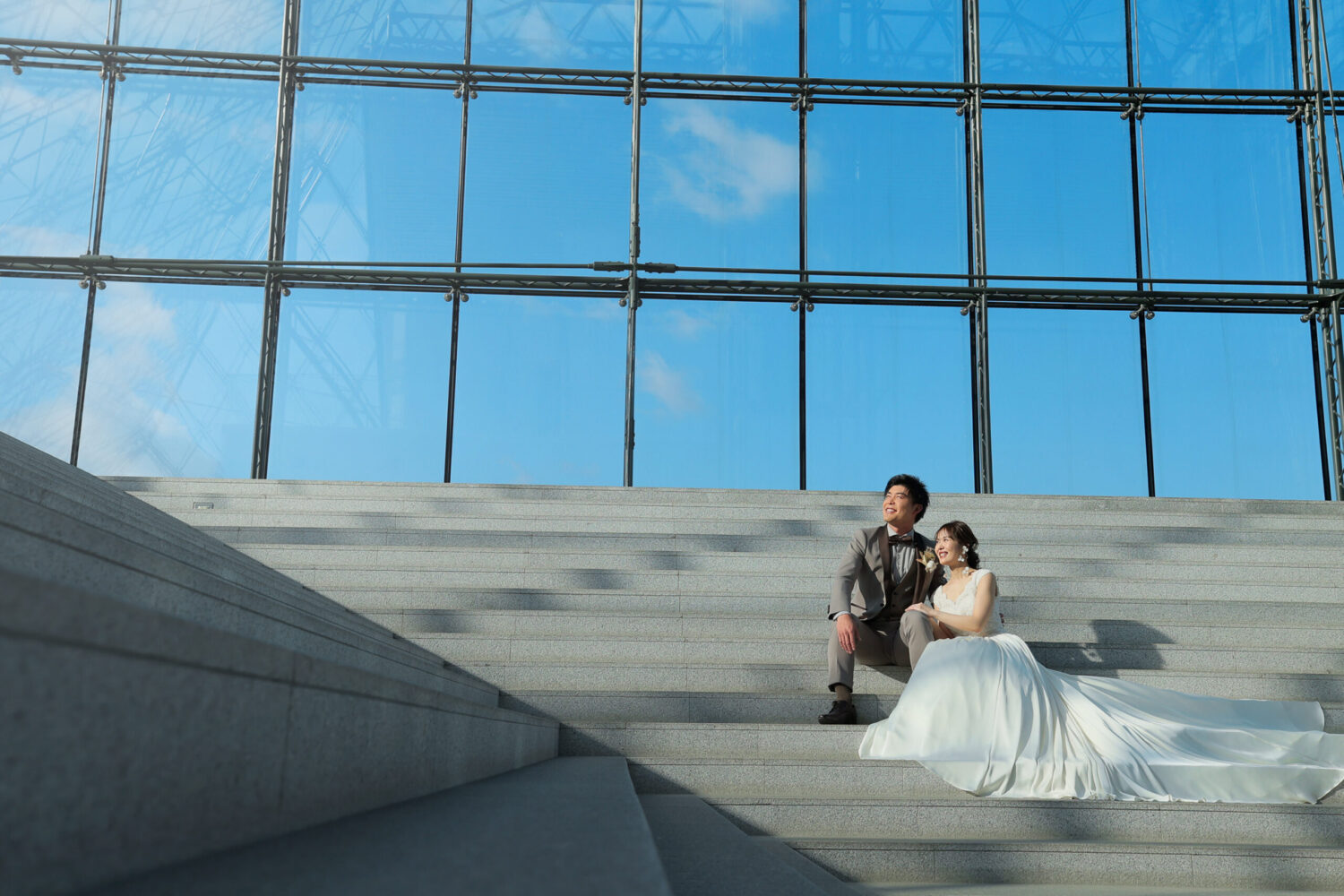 ガラスのピラミッドなどの建造物が特徴的です! 冬は雪、春夏秋は広大な芝生での スケール感のある撮影が可能◎