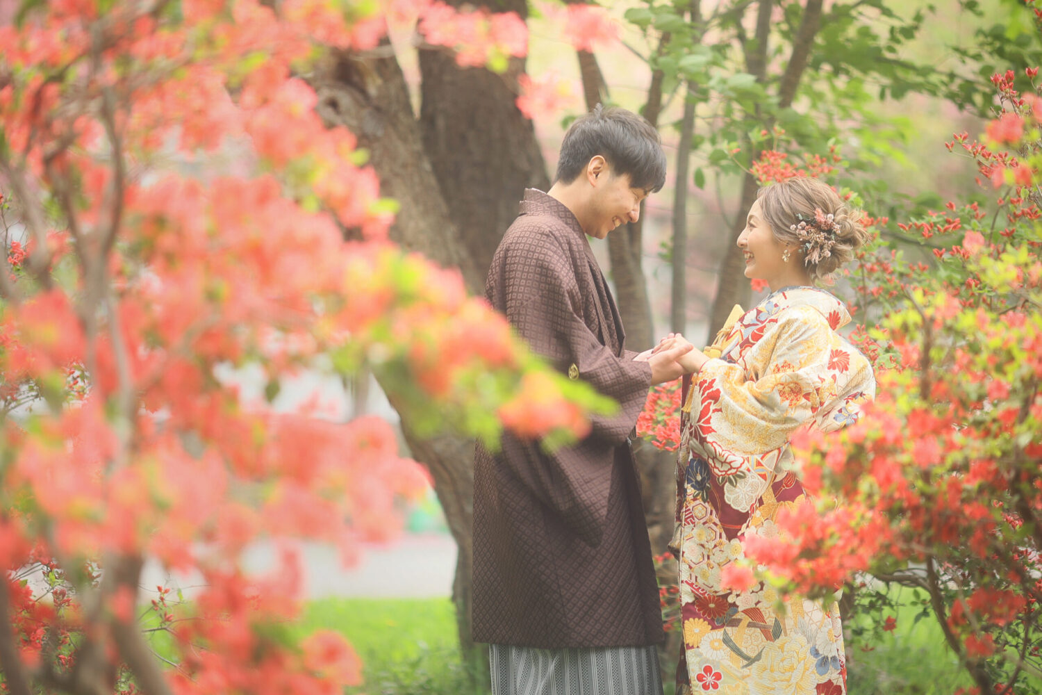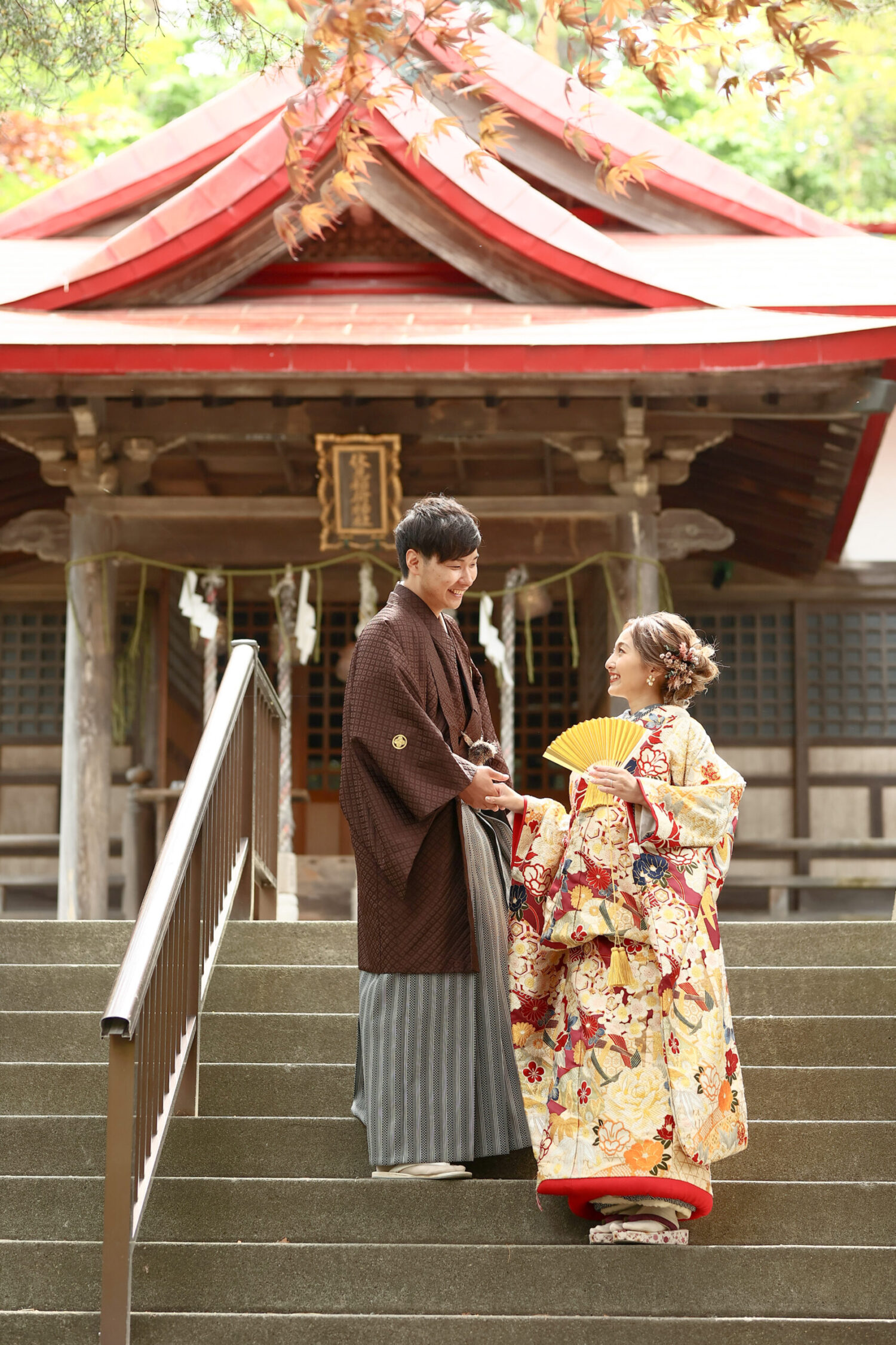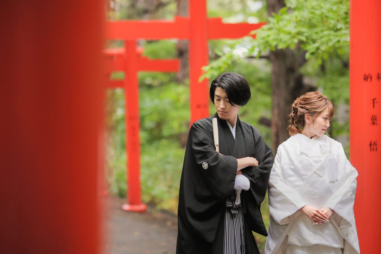 神社の入り口には26本の鳥居が連なる 和装にぴったりの日本らしい風景が広がります。