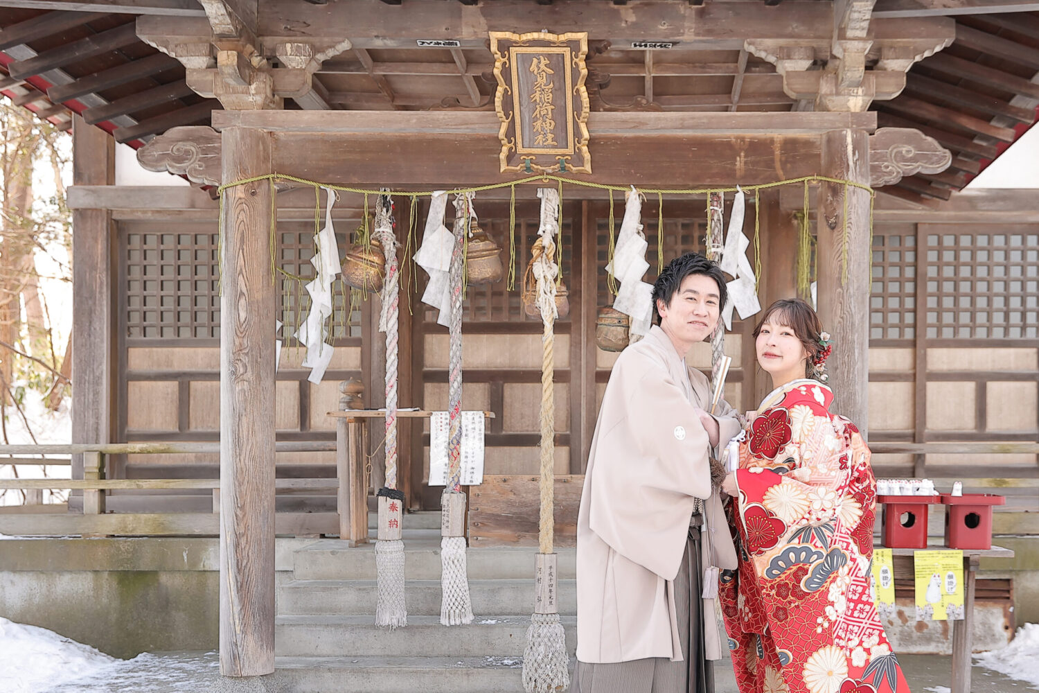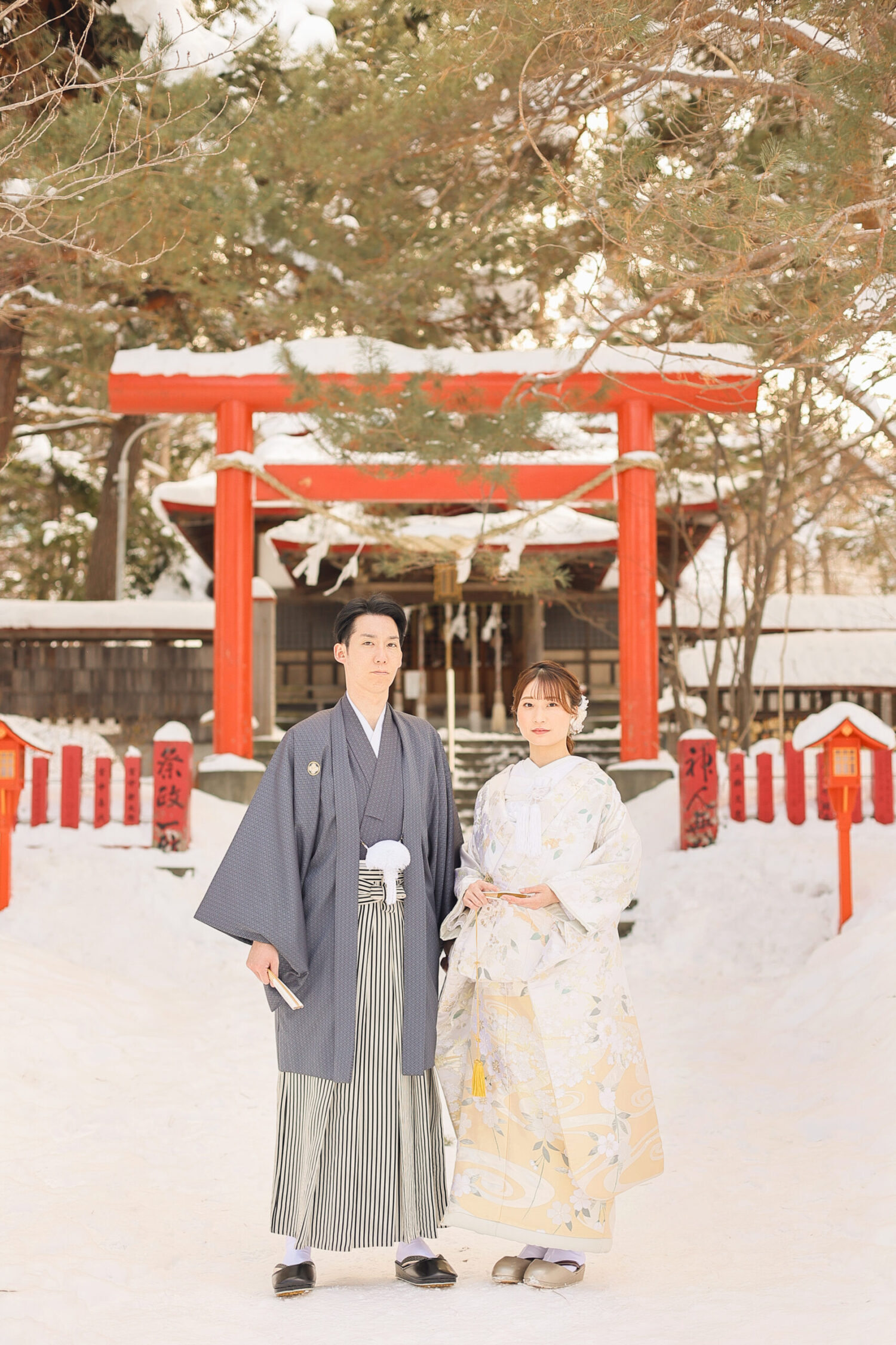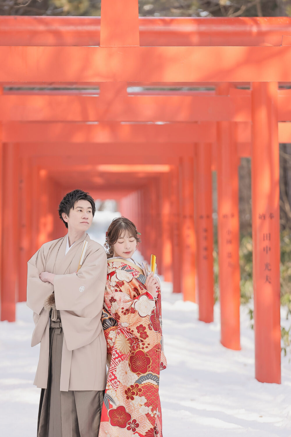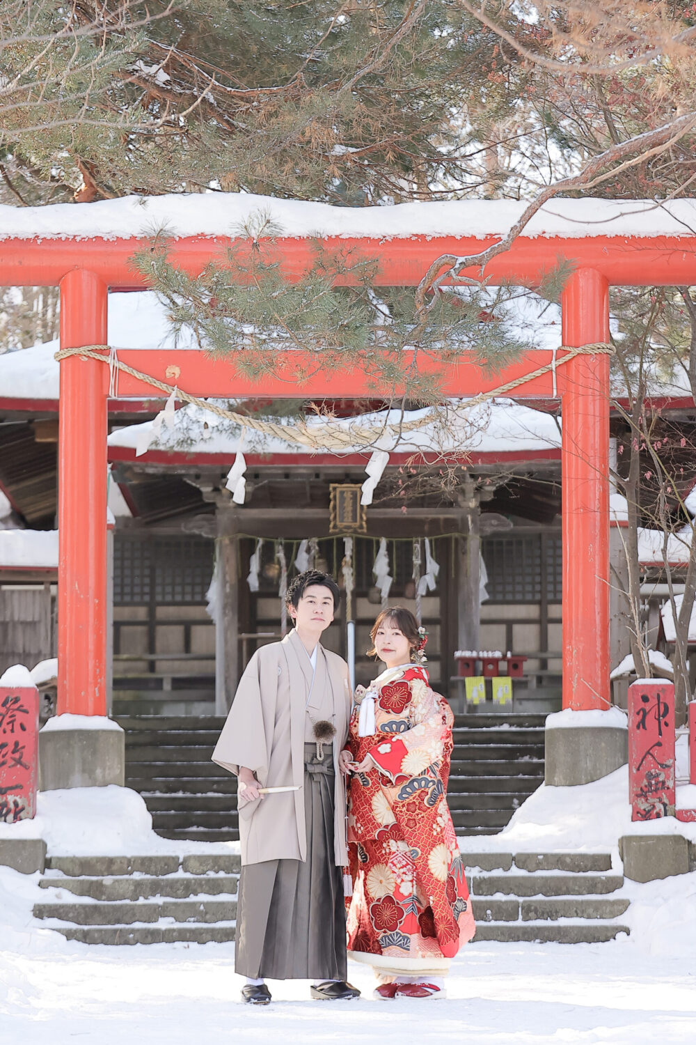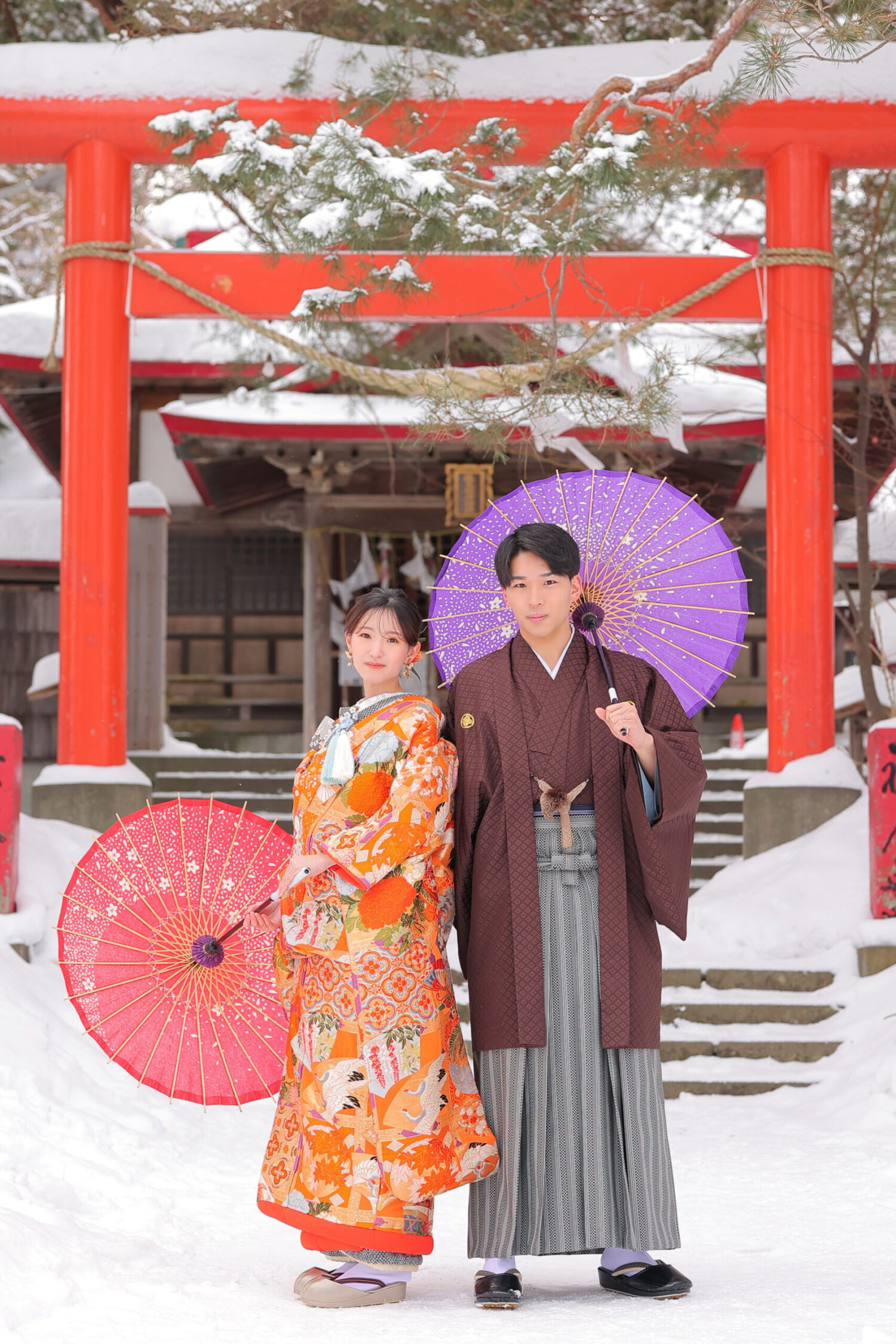 本殿手前の広場では、夏は緑、 冬には白い雪と朱色の鳥居という、 とても鮮やかな写真が撮影できます◎