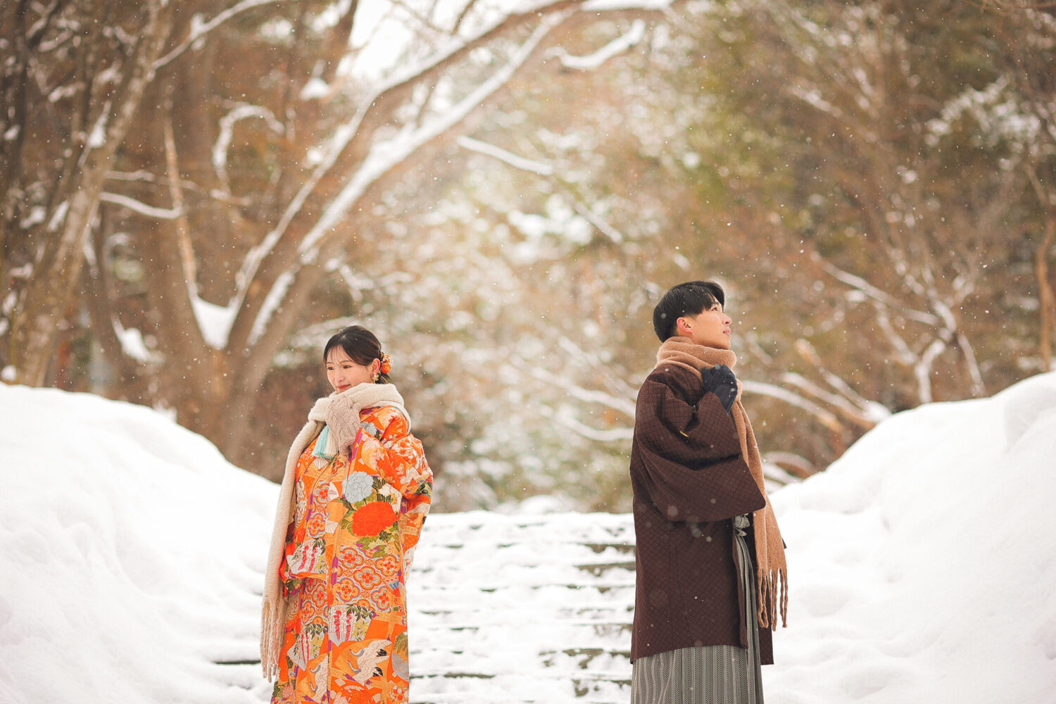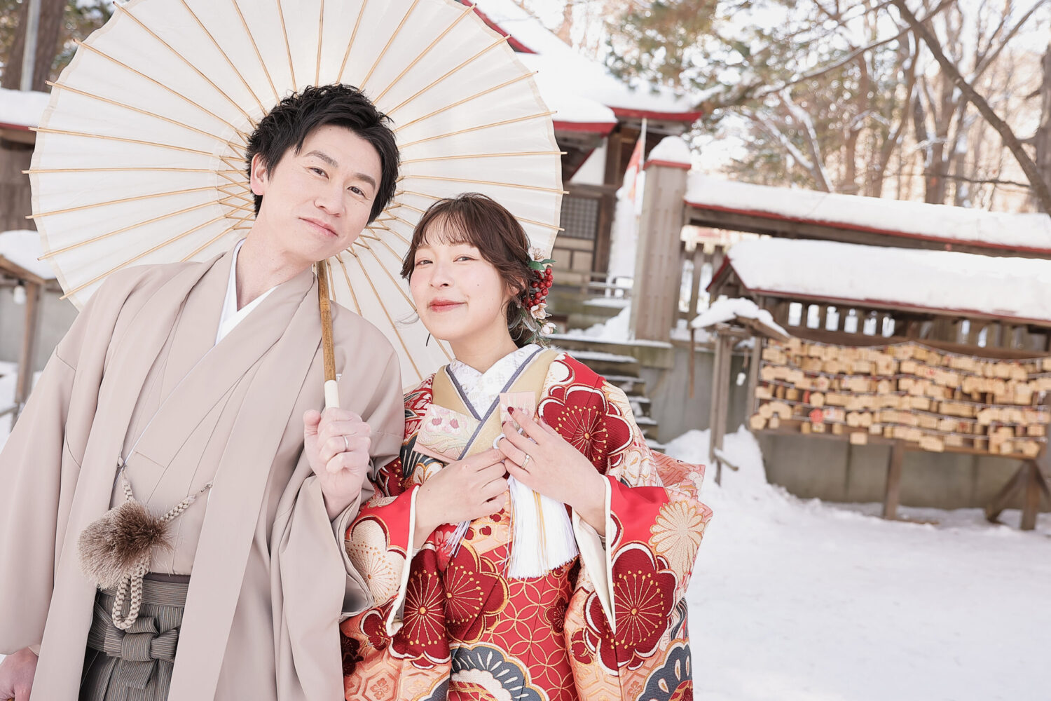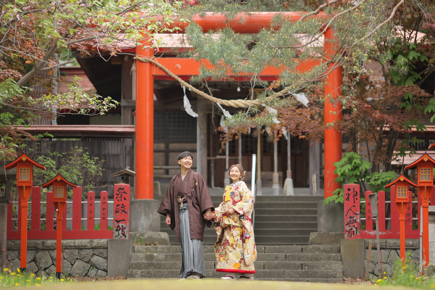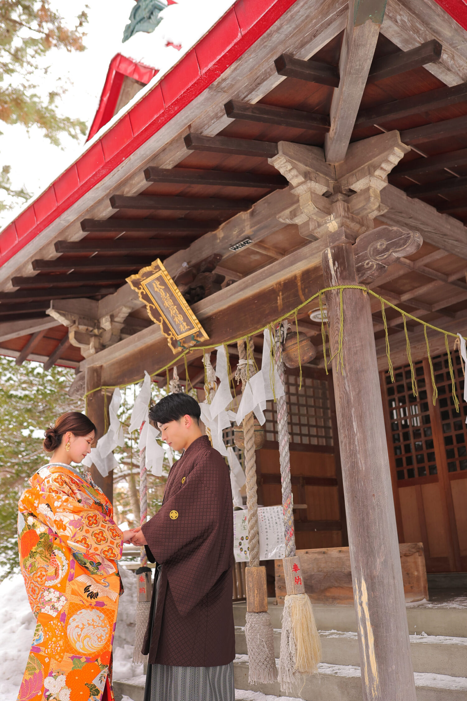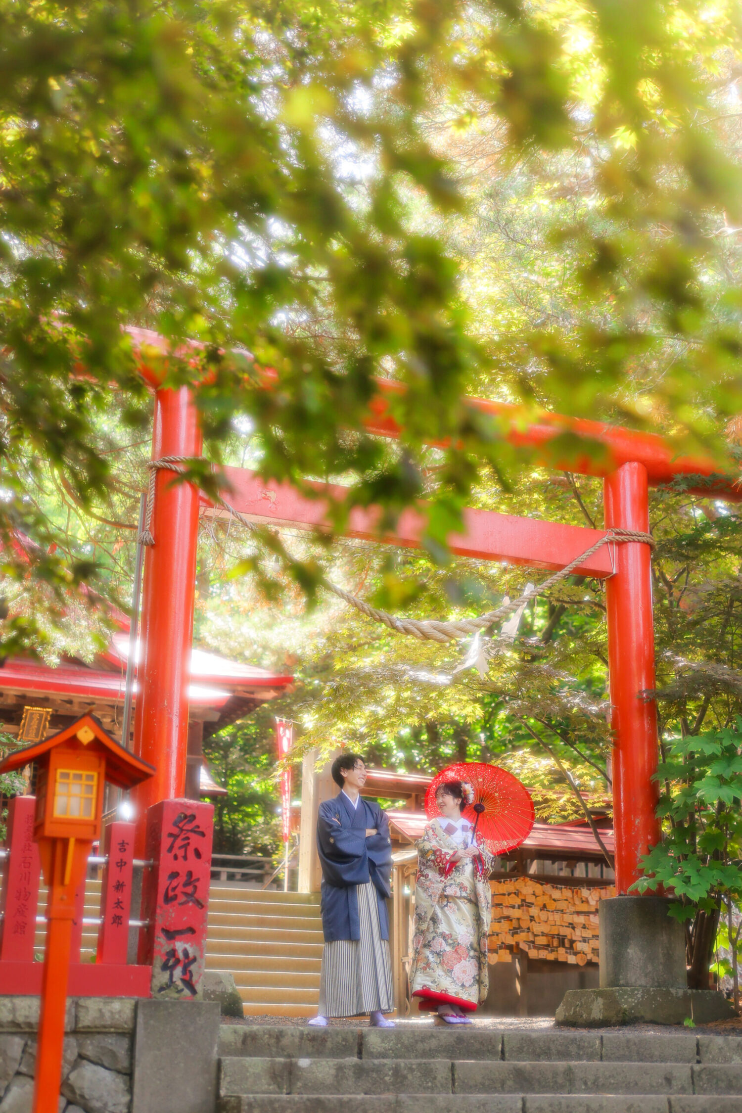 本殿手前の広場では、夏は緑、 冬には白い雪と朱色の鳥居という、 とても鮮やかな写真が撮影できます◎