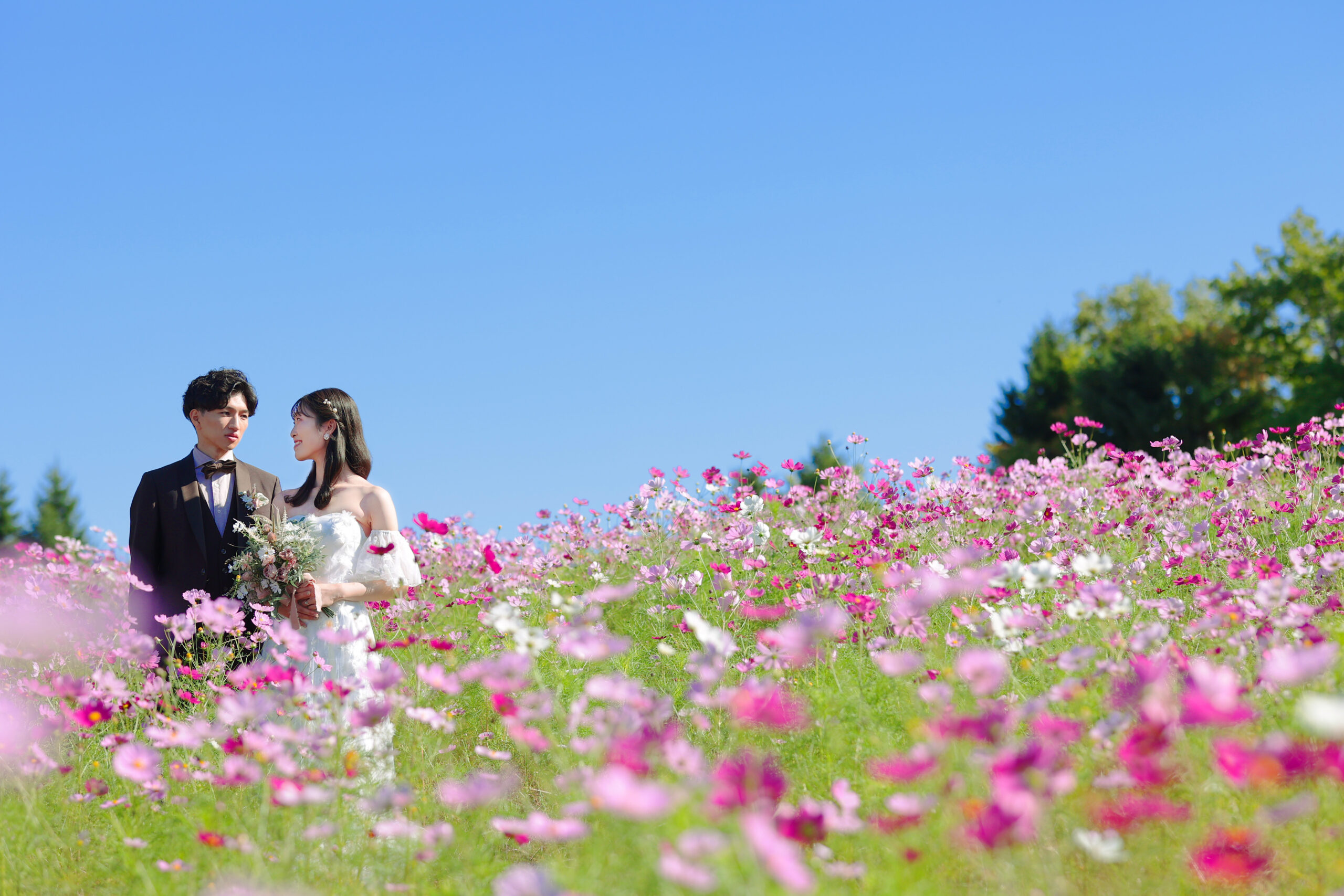 花嫁様が1度は憧れる、お花畑に囲まれた撮影や 大きな自然に囲まれた撮影が出来る ダイナミックな景色のロケスポット♩