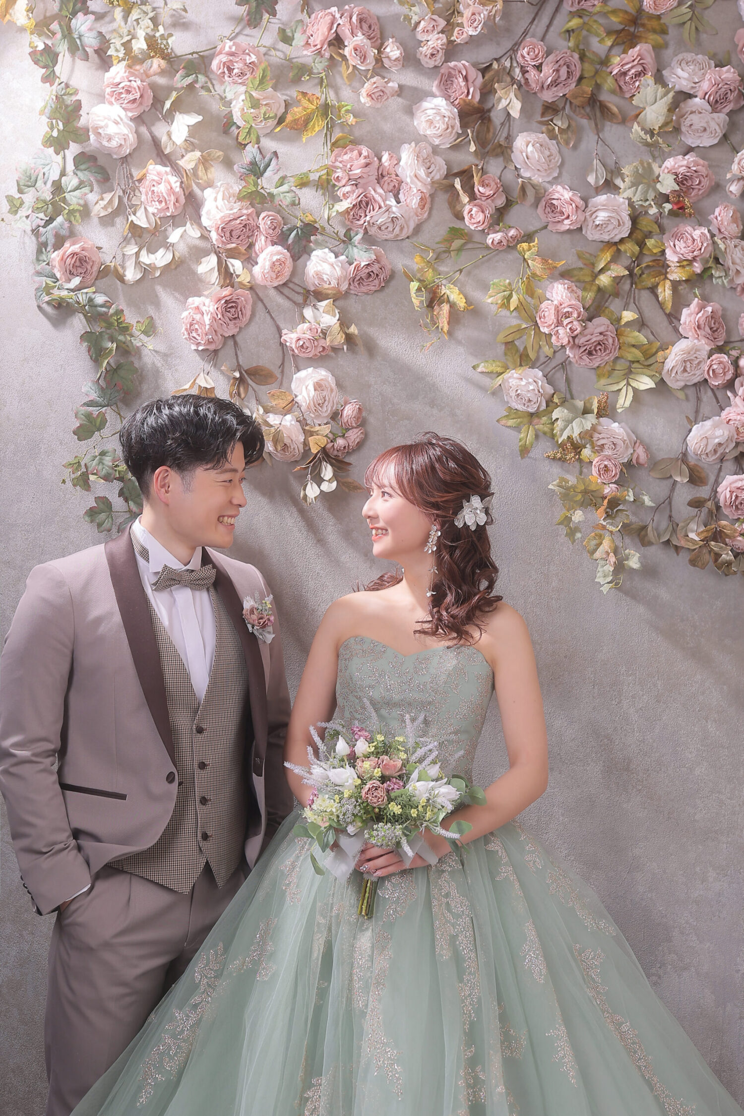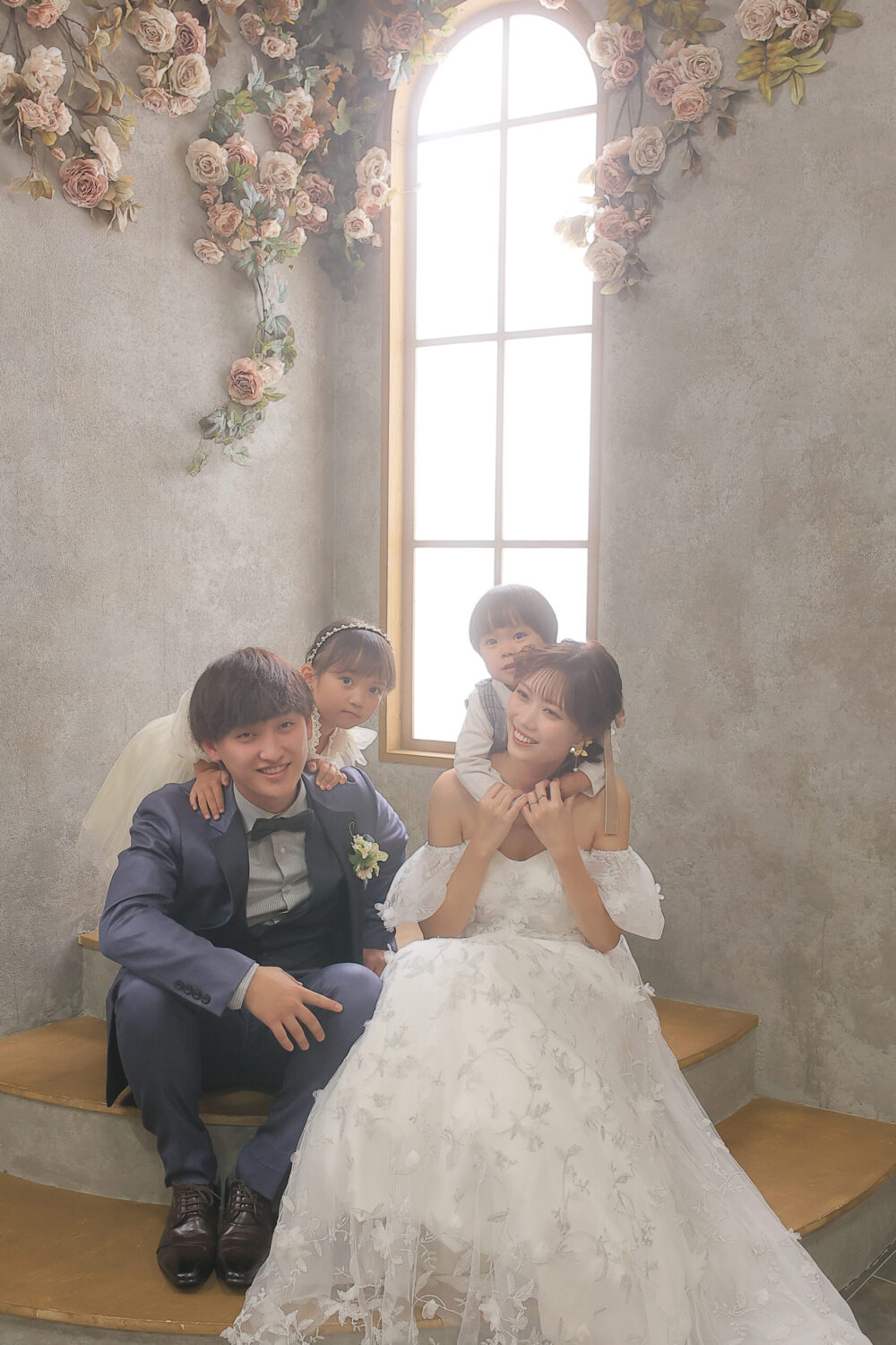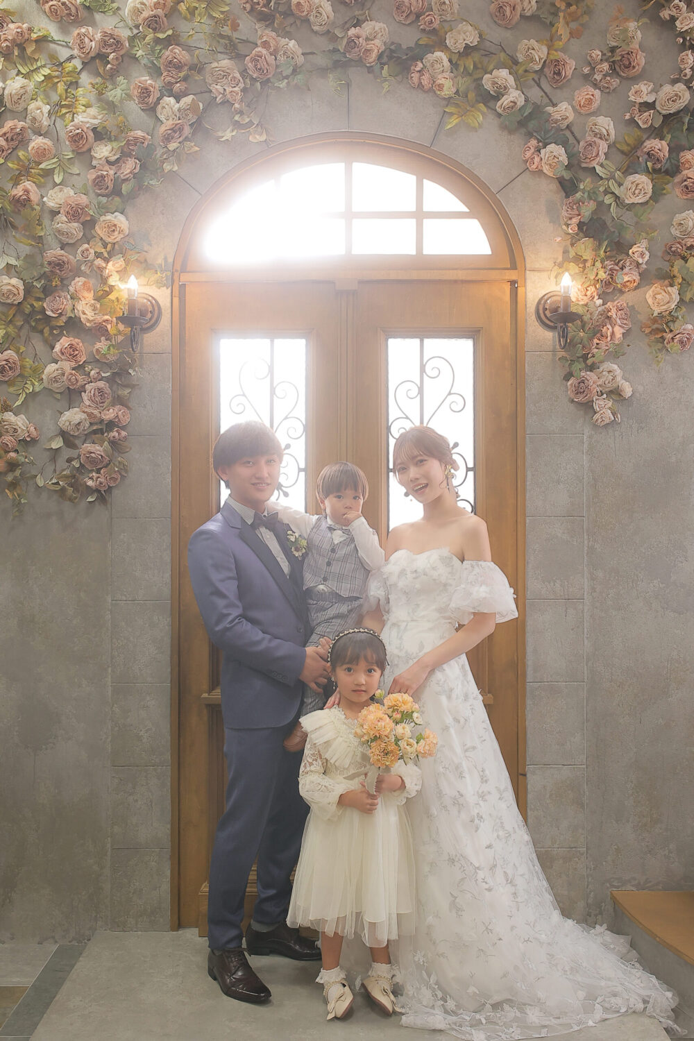 お花は『幸福』を意味するピンクのバラをメインに使用!