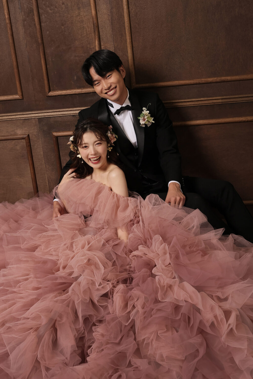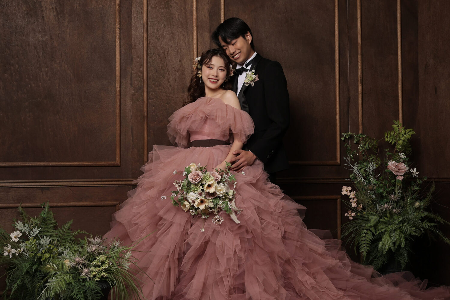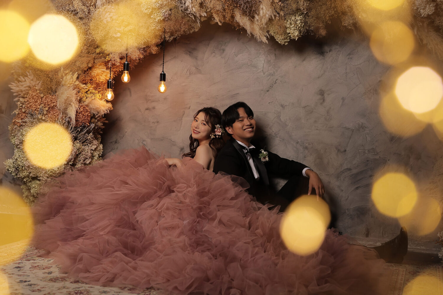 お花は『幸福』を意味するピンクのバラをメインに使用!