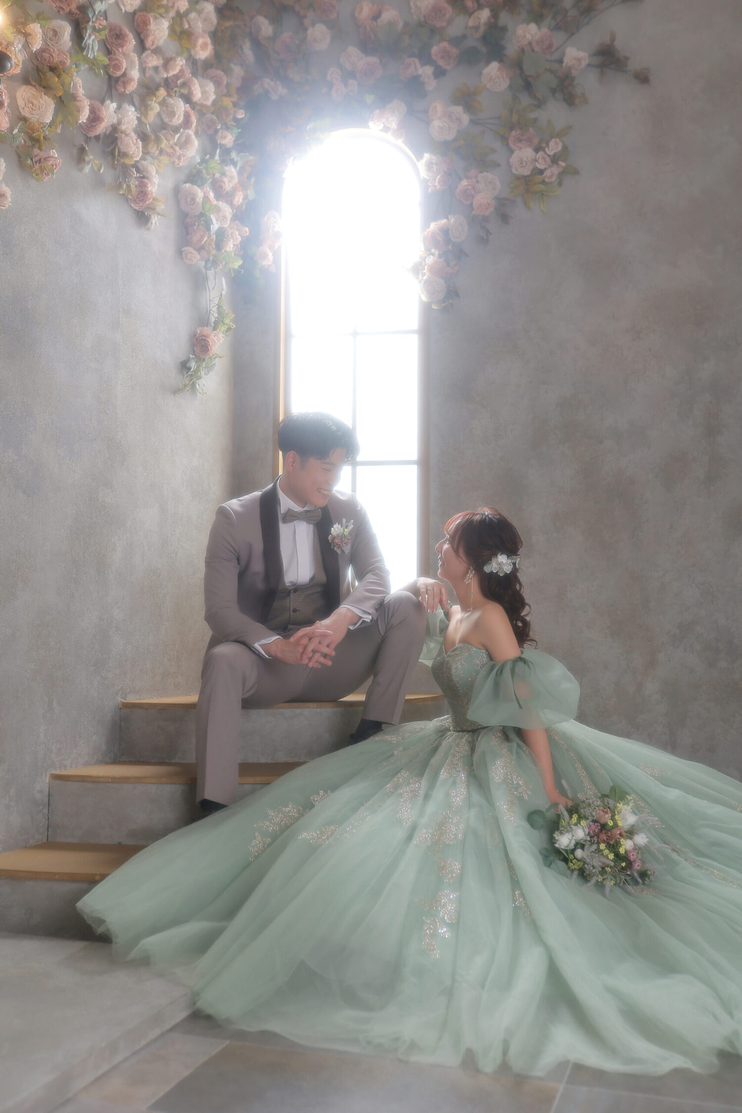 階段に上がり、大人気のトレーンを流しての撮影も◎