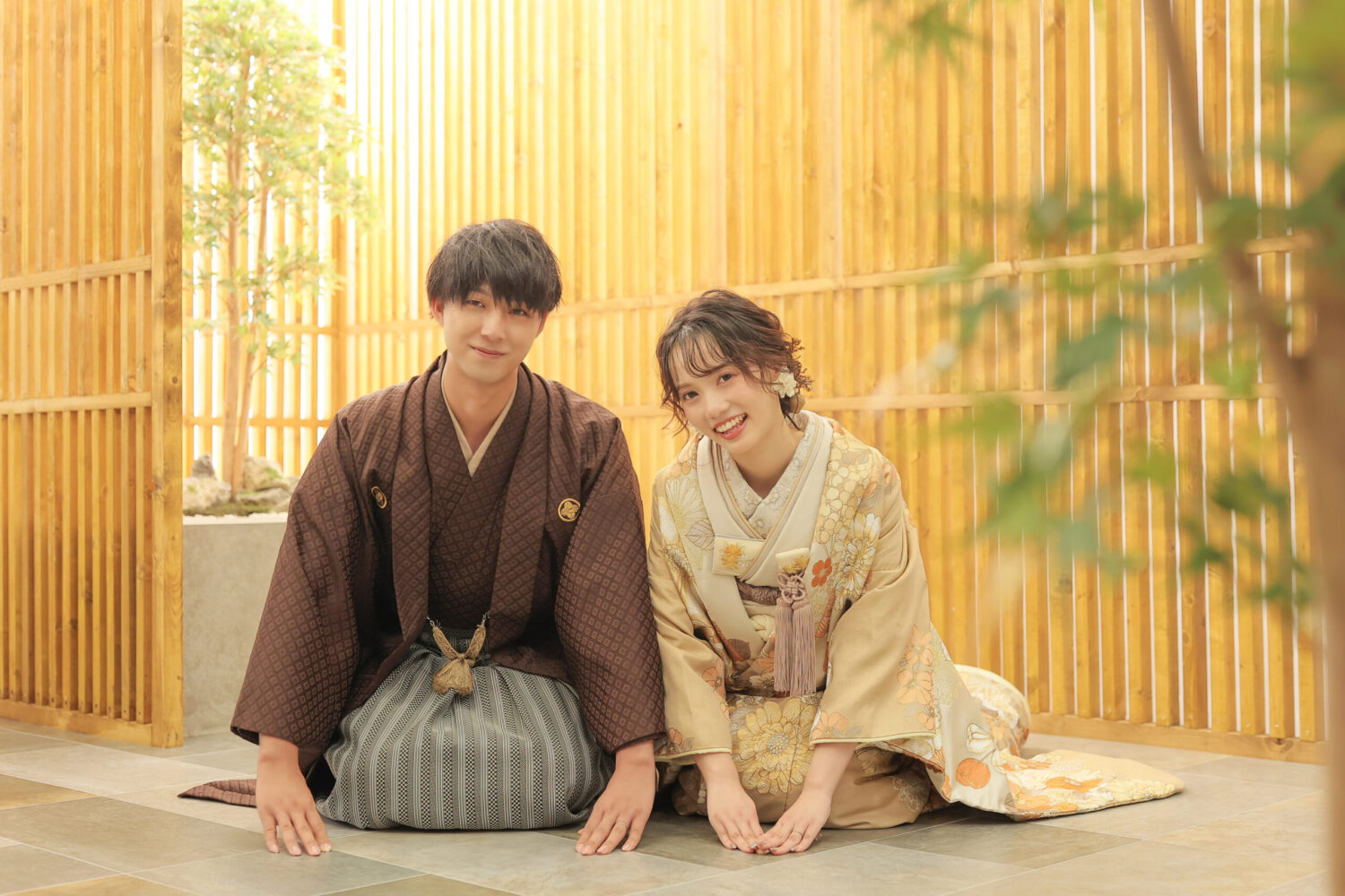 坪庭の空間では人気の正座ショットも撮影可能!