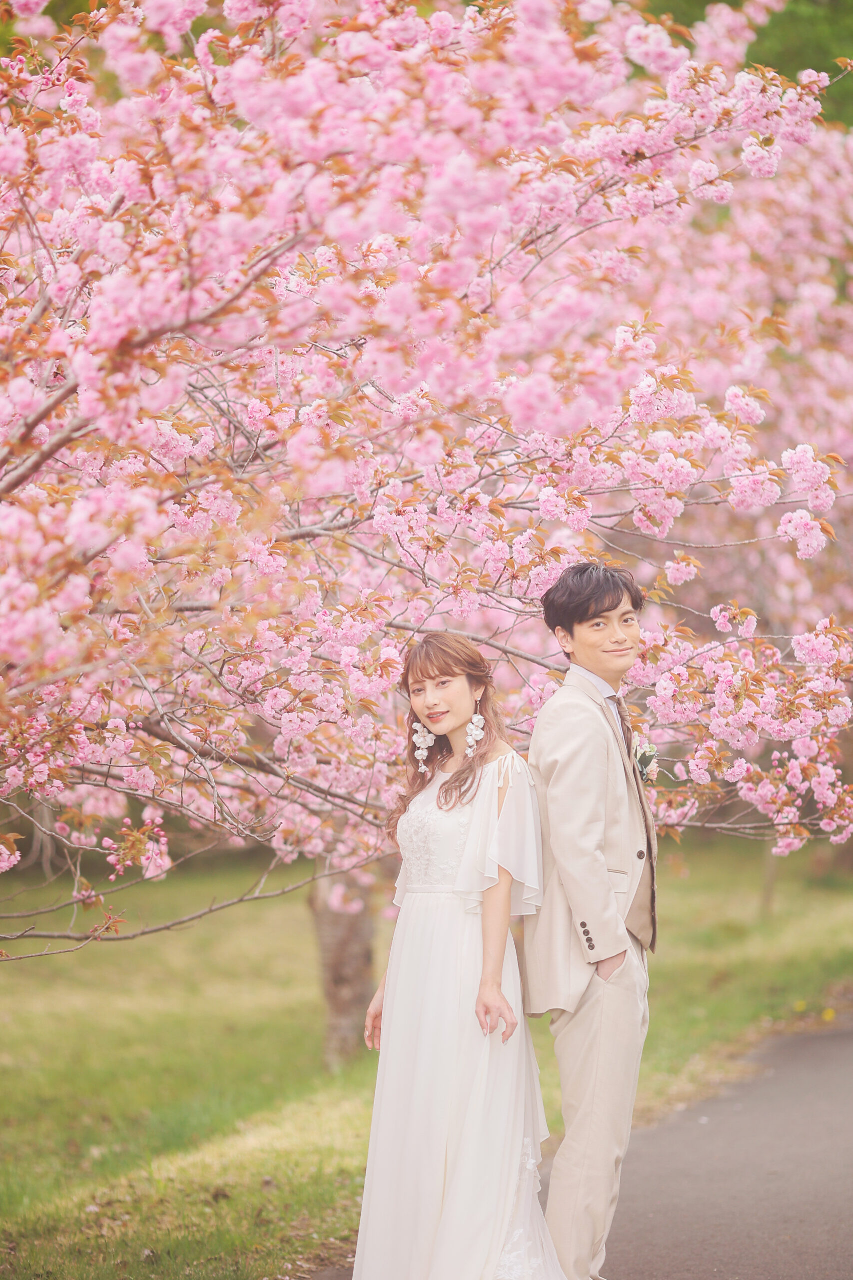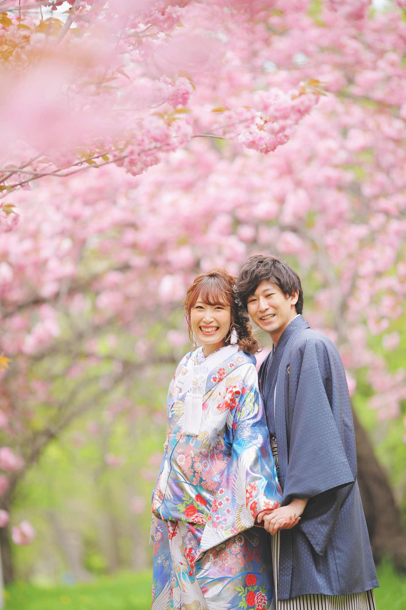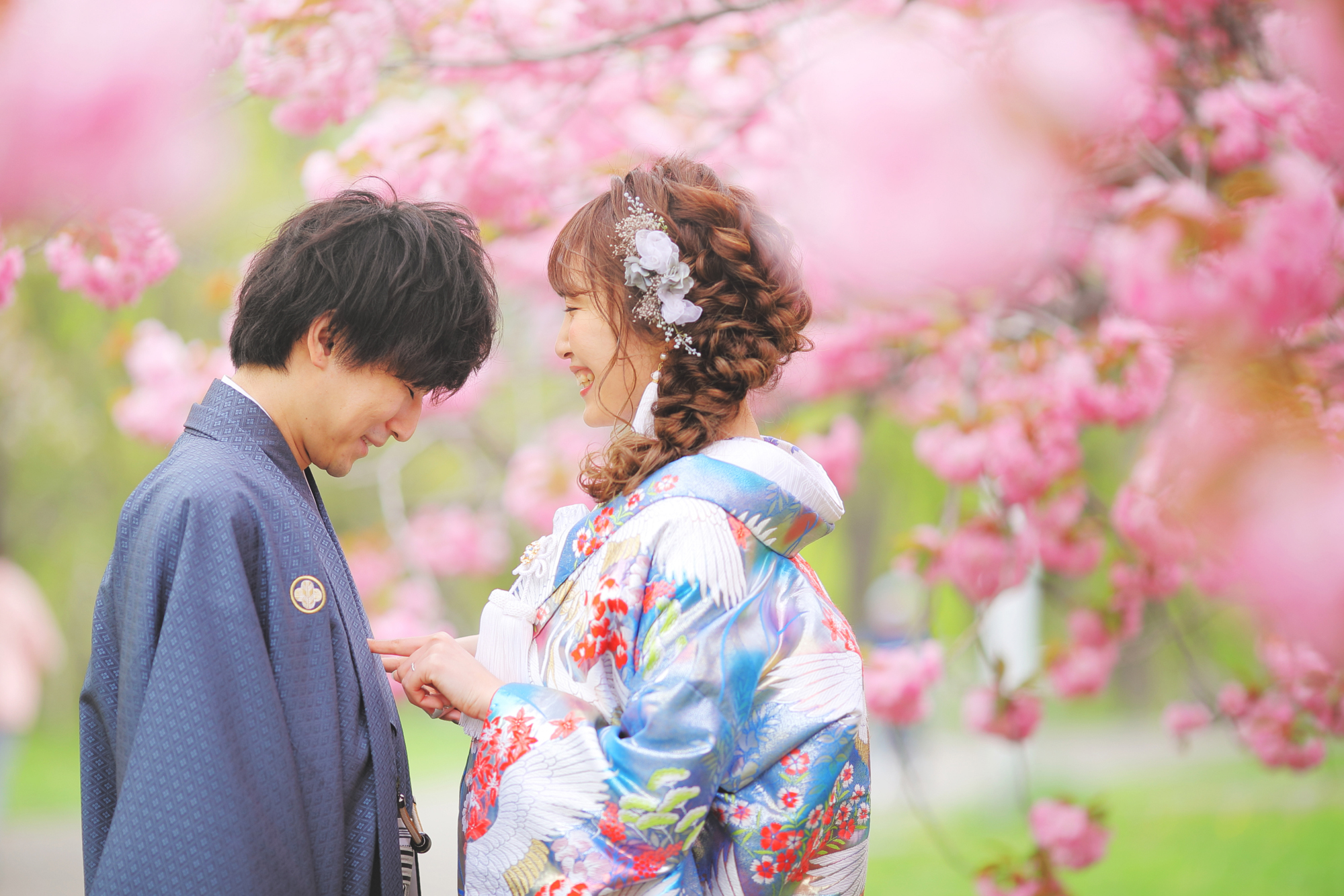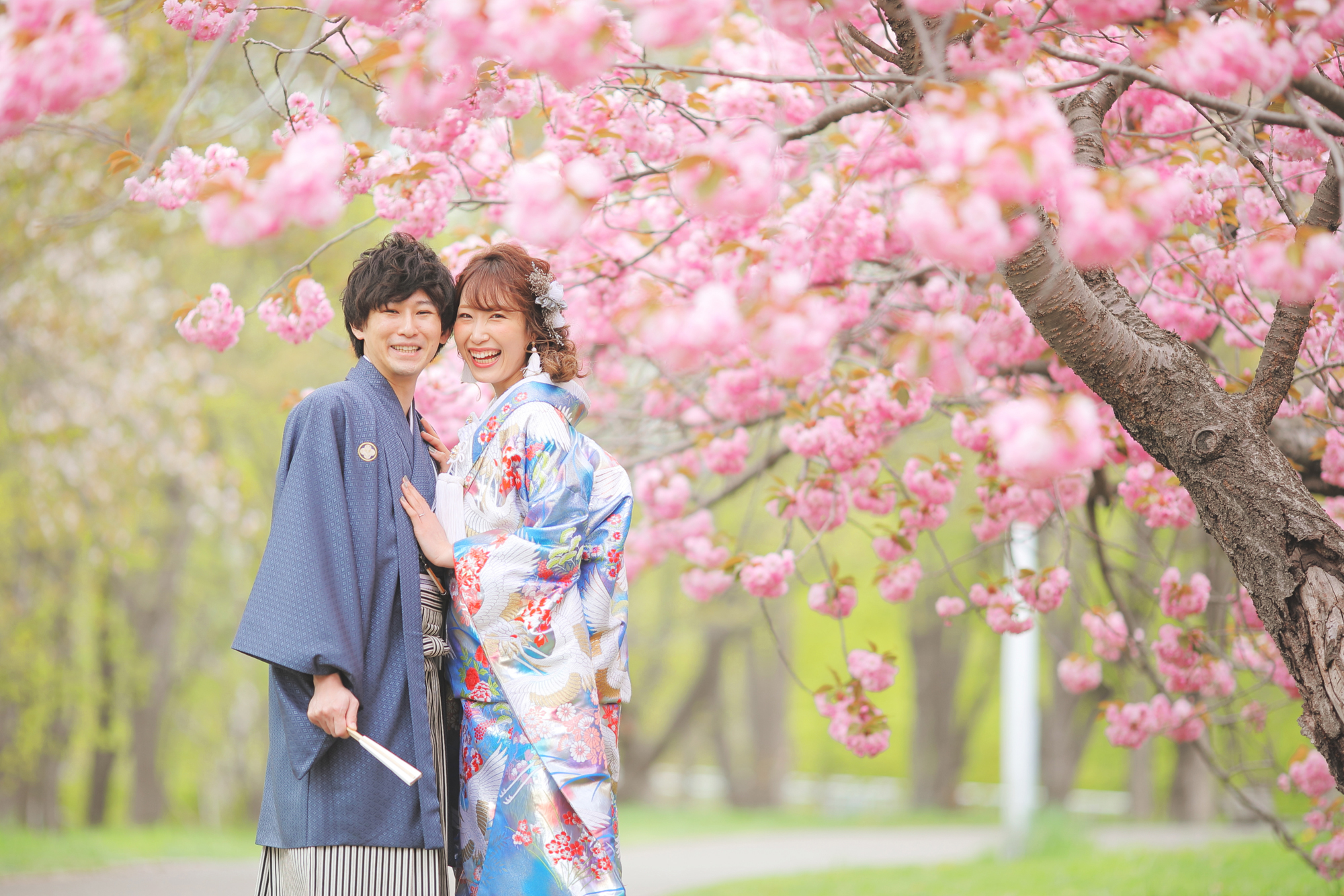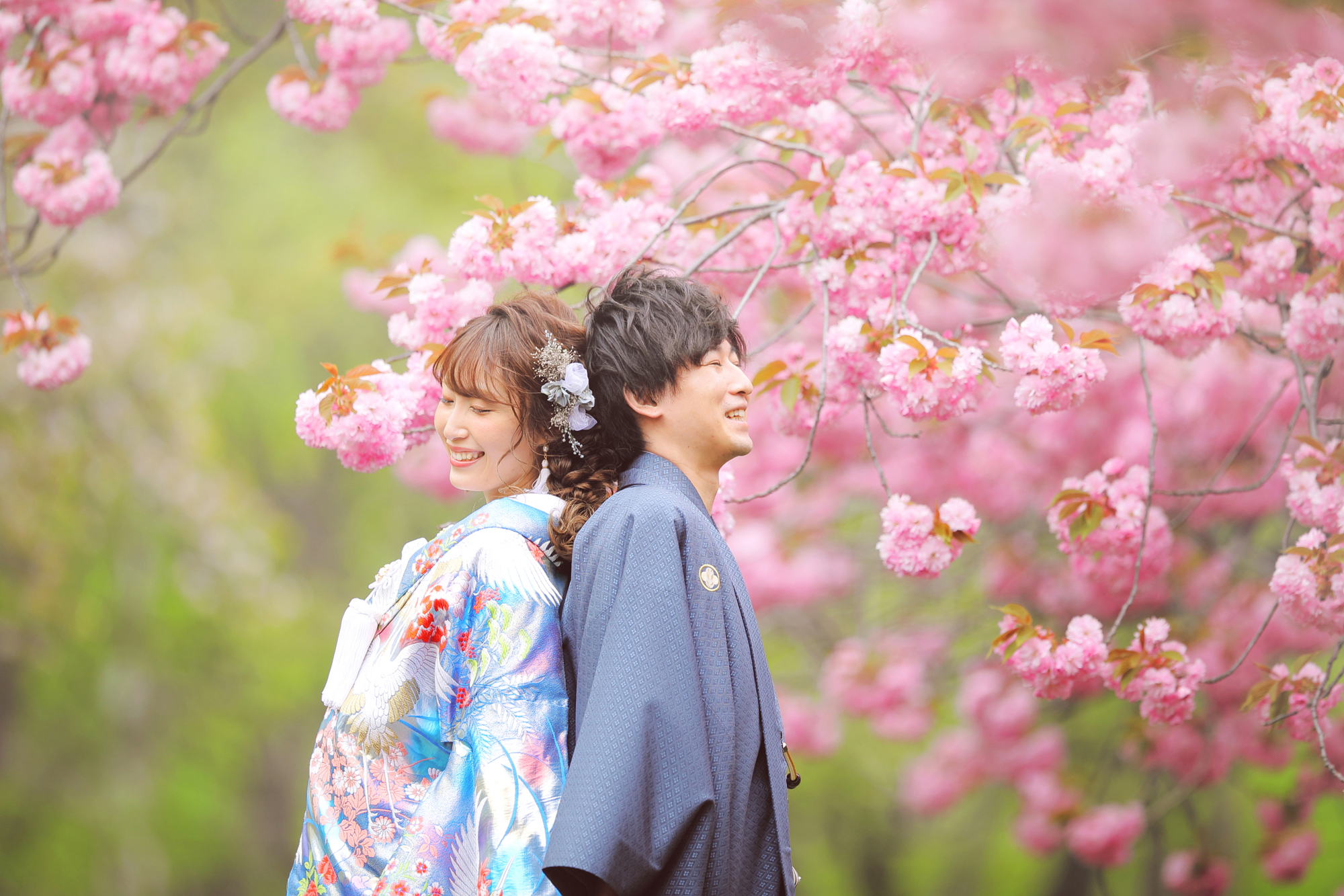 ピンクの八重桜に囲まれた可愛らしく 温かみのある笑顔満点なお写真を♩