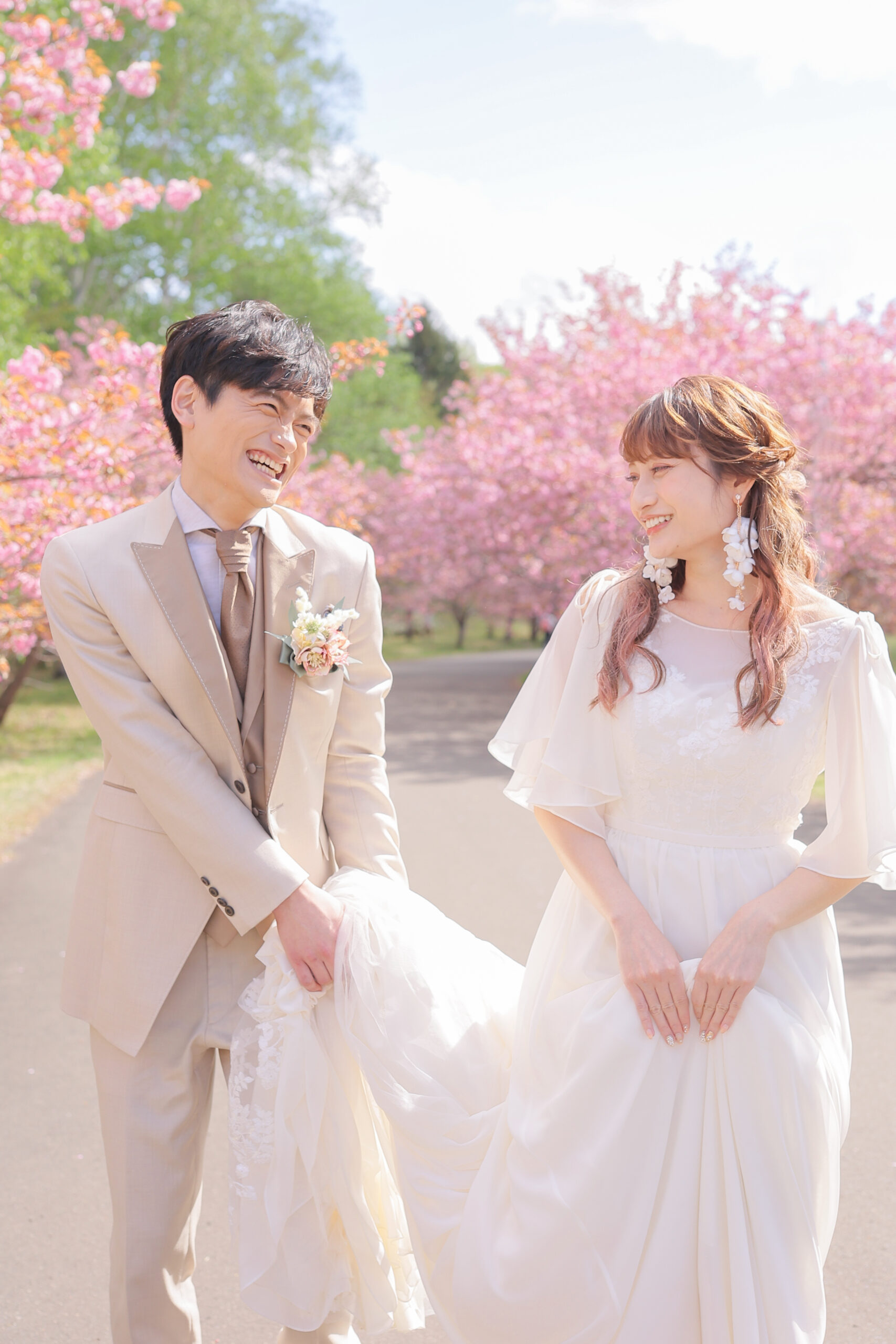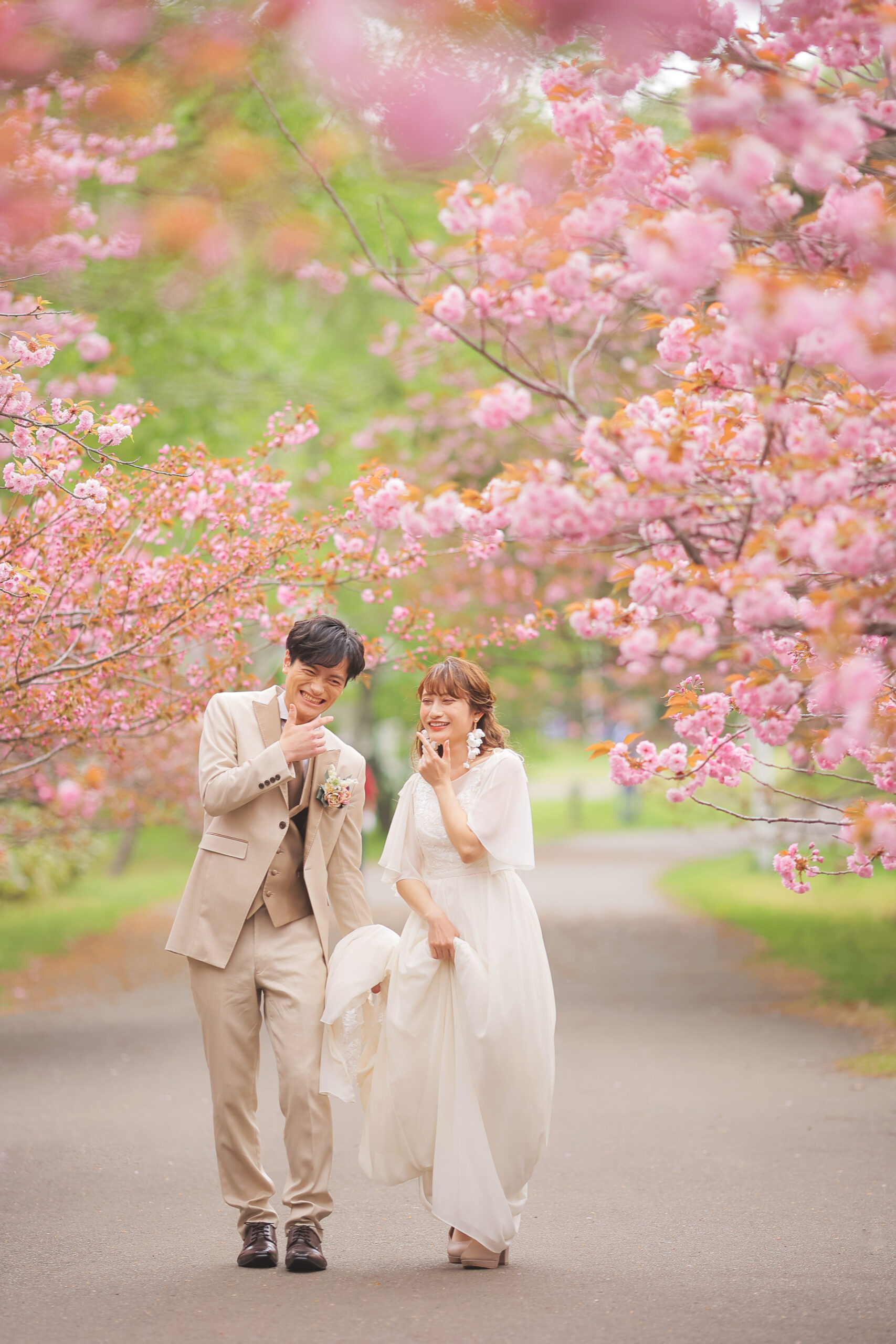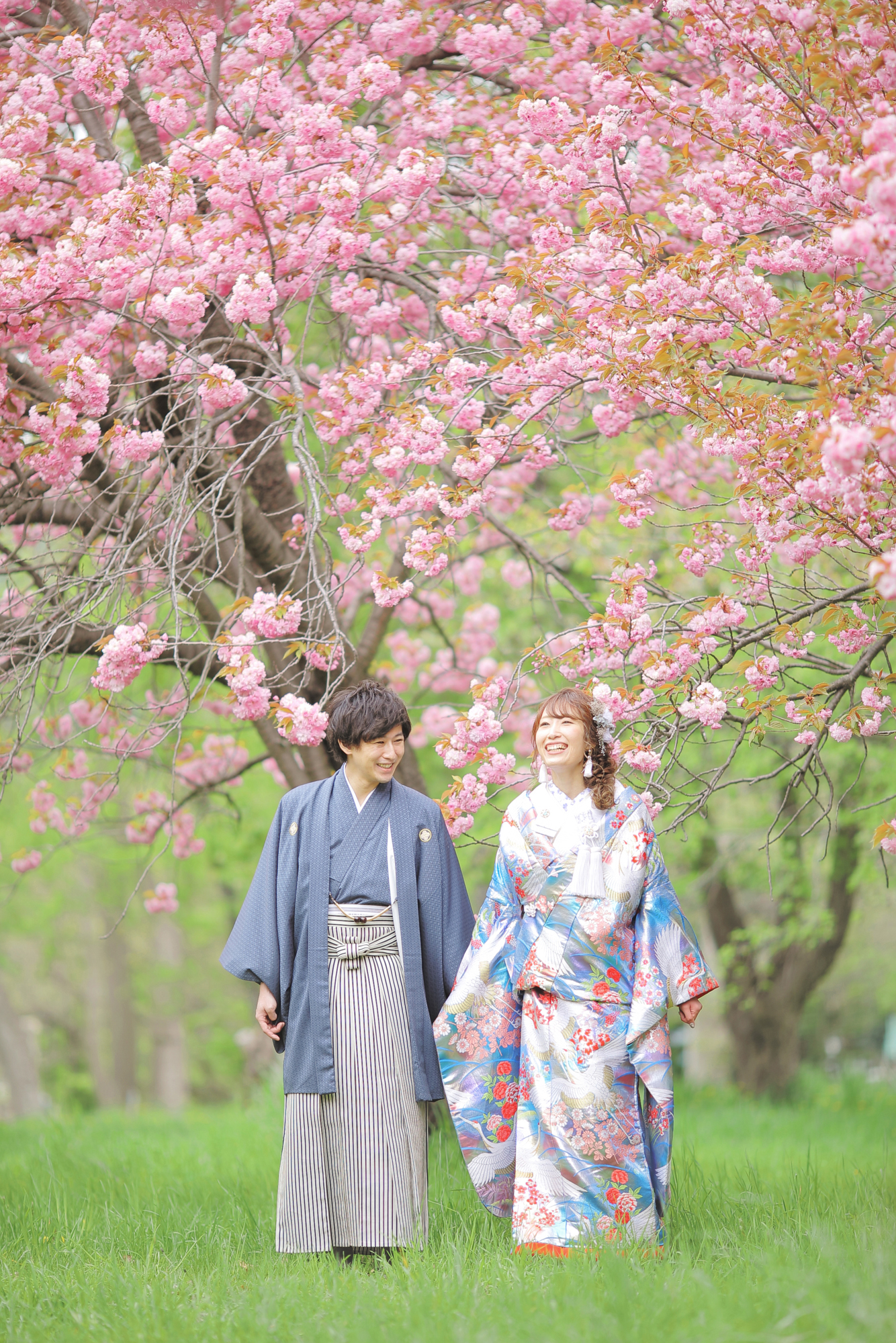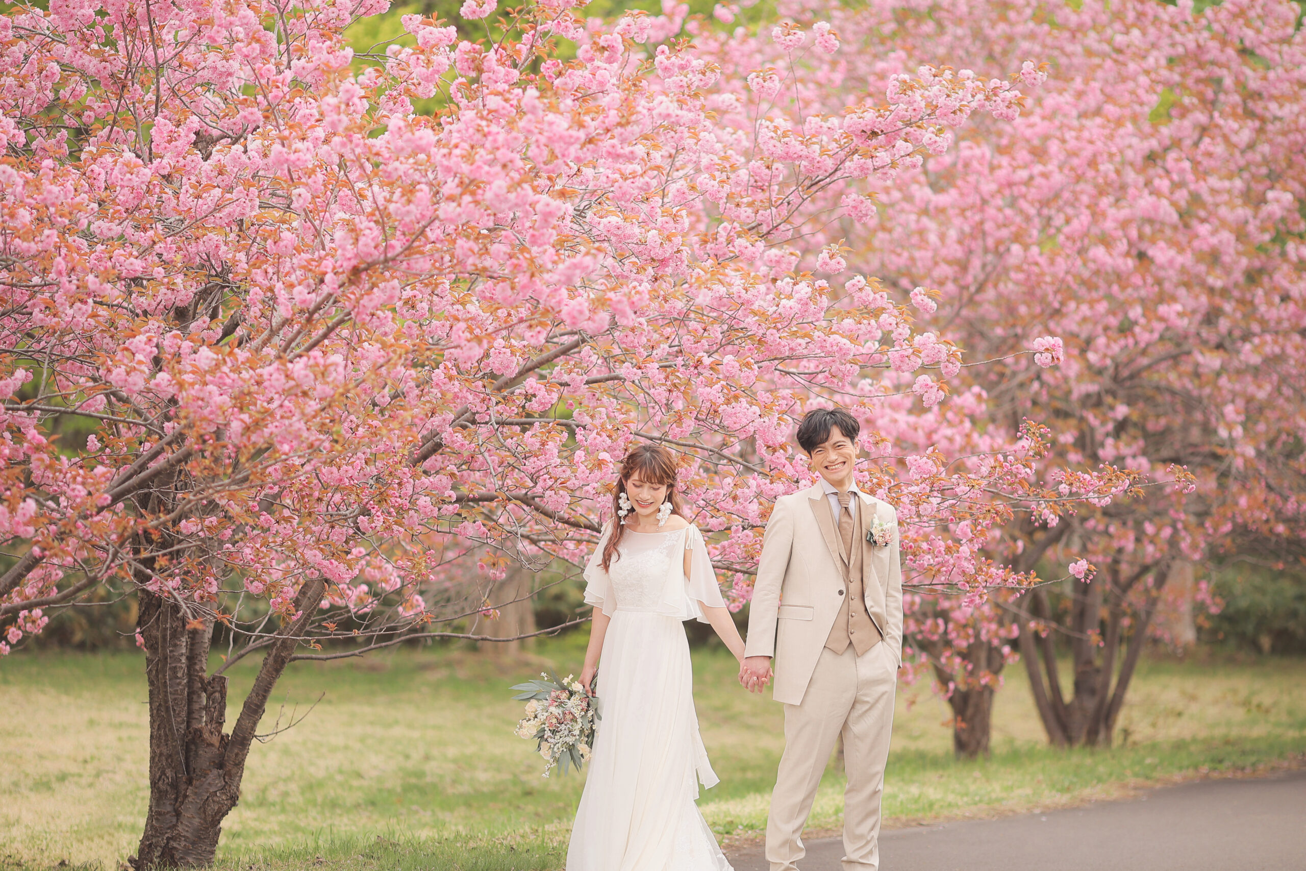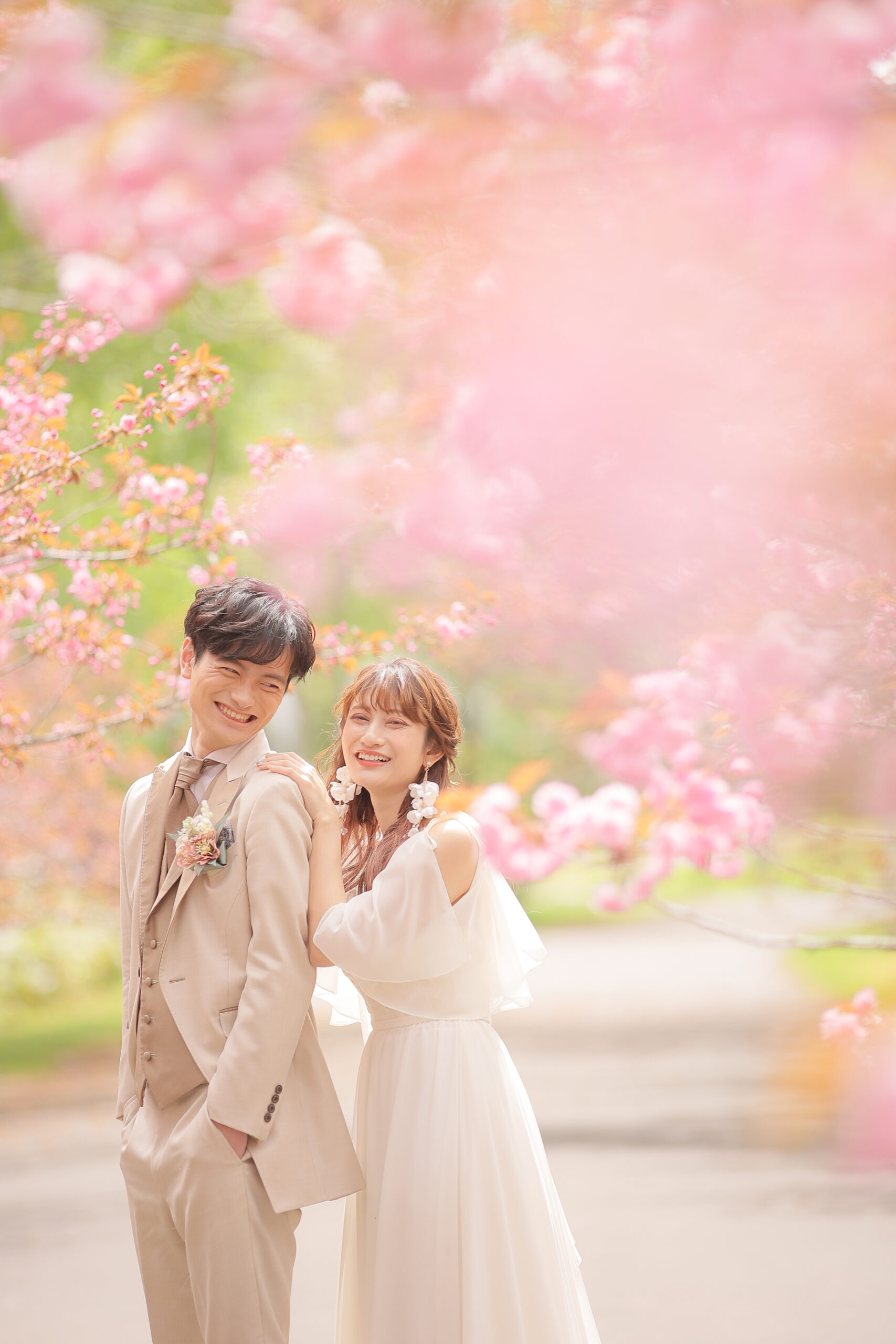 ピンクの八重桜に囲まれた可愛らしく 温かみのある笑顔満点なお写真を♩