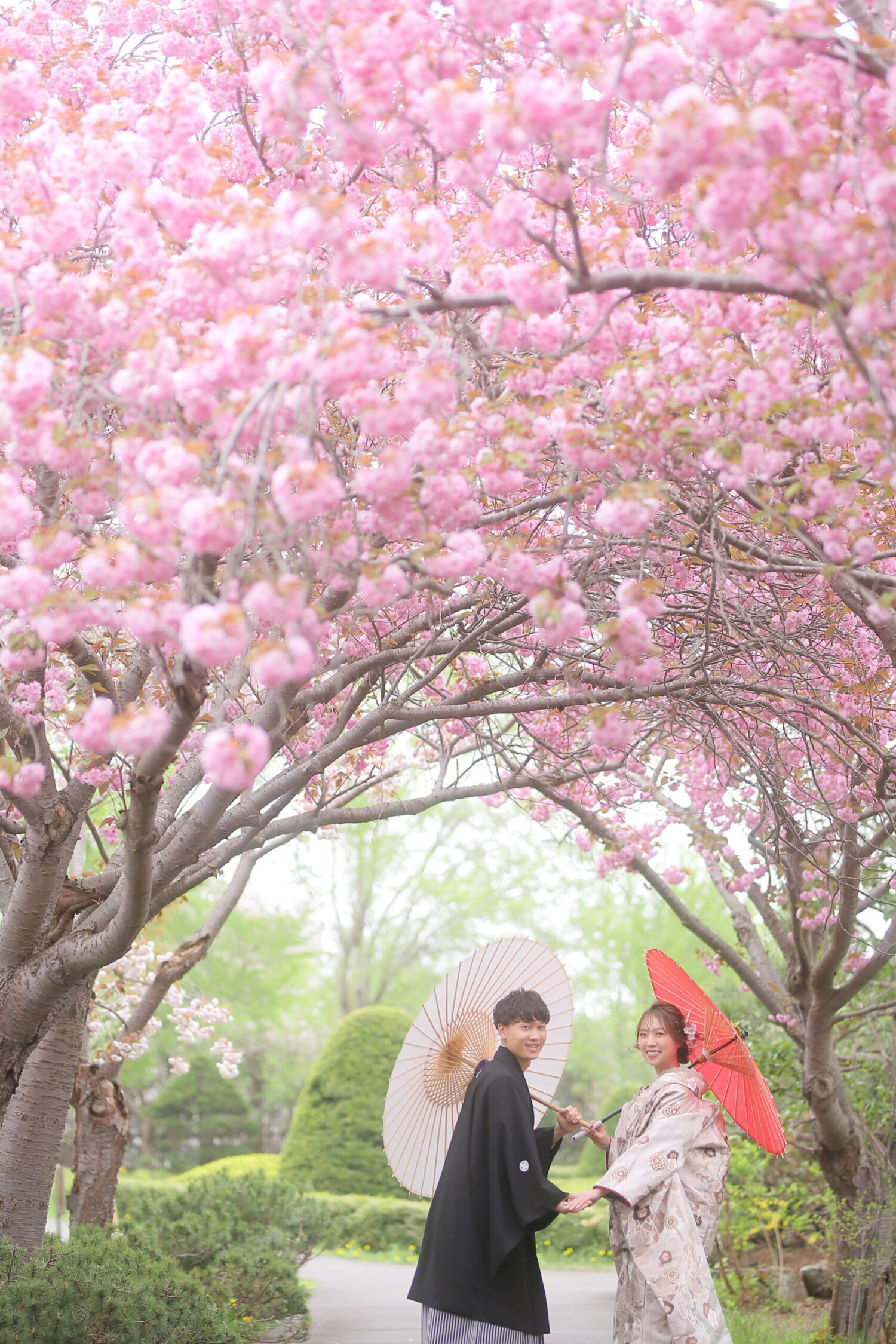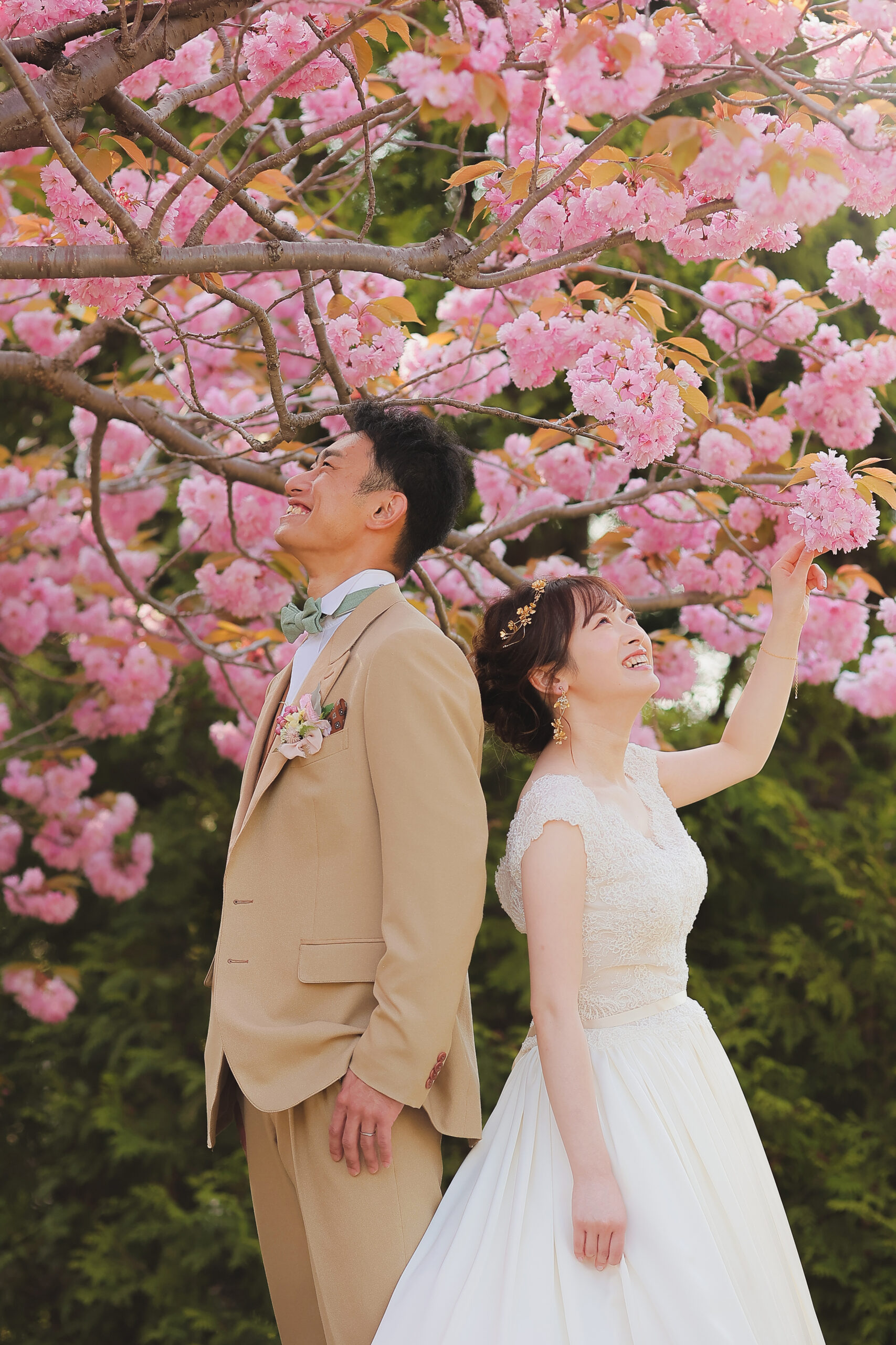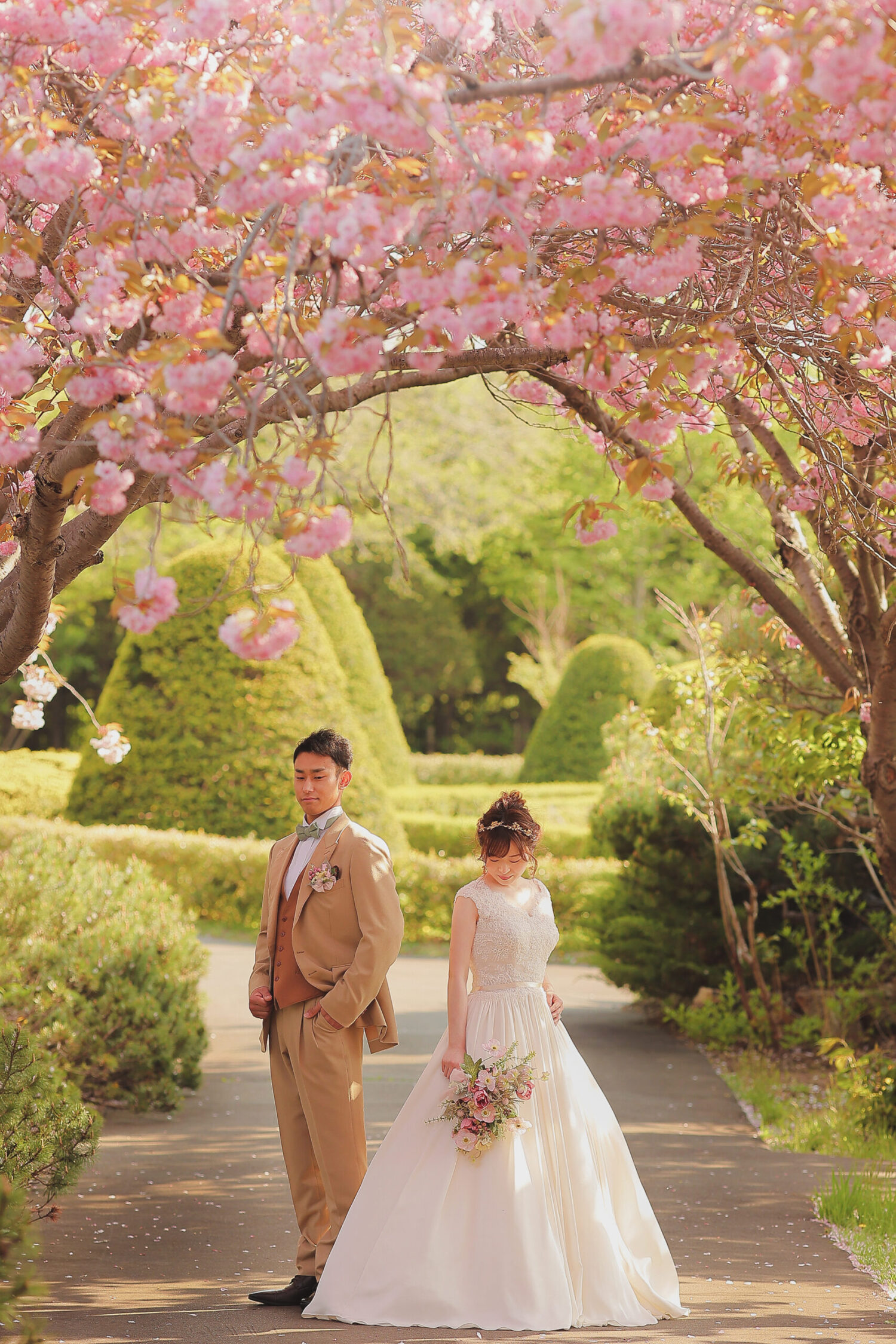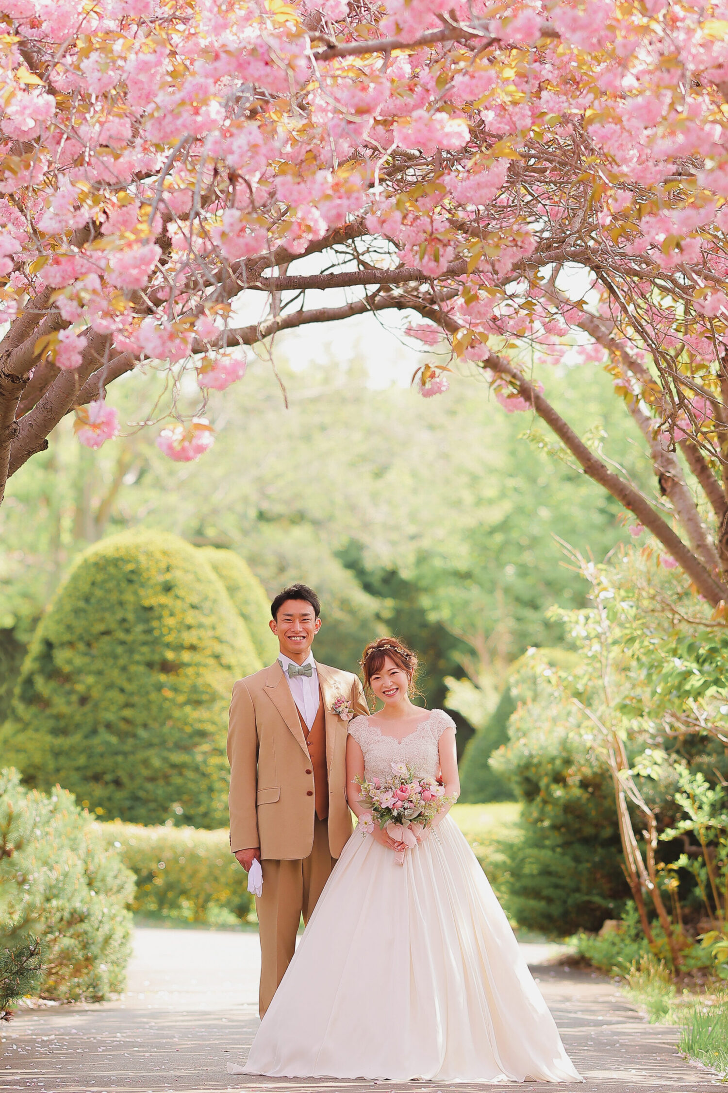 桜トンネルの下で自然に囲まれてのお写真は お2人の幸せを包み込んでいるかのようです♩