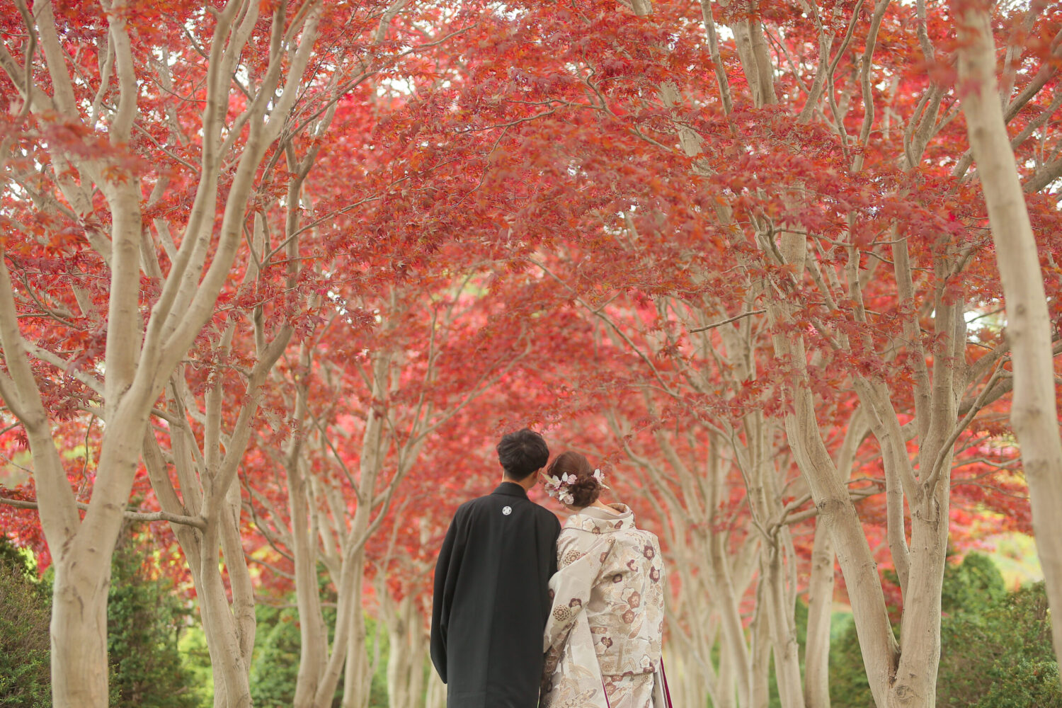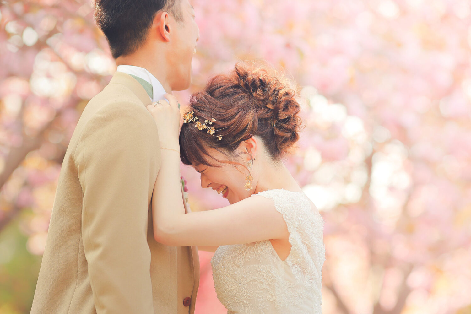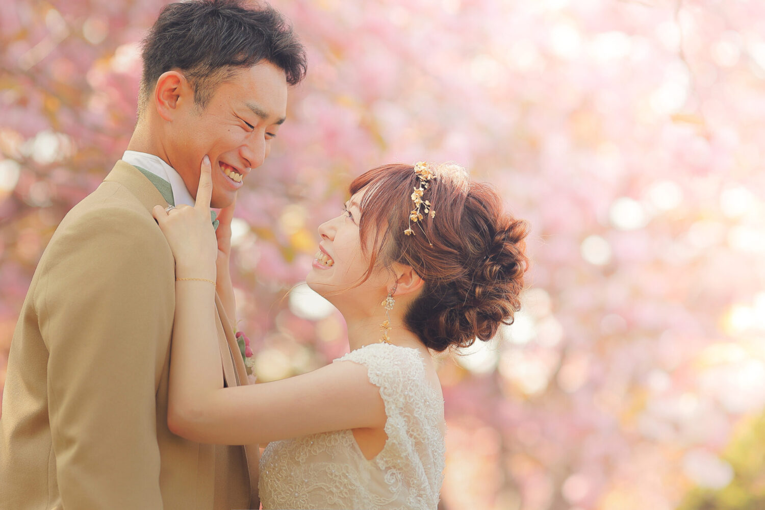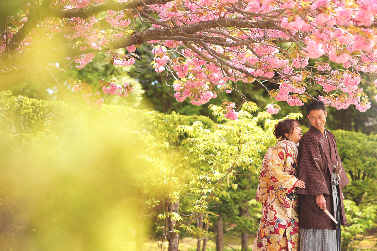 桜トンネルの下で自然に囲まれてのお写真は お2人の幸せを包み込んでいるかのようです♩