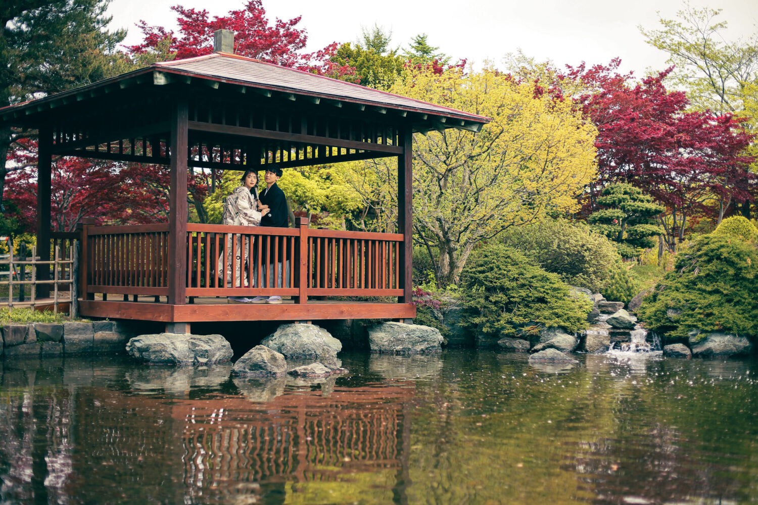 敷地内には美しい池や日本庭園があり、 特に和装との組み合わせがおすすめ◎