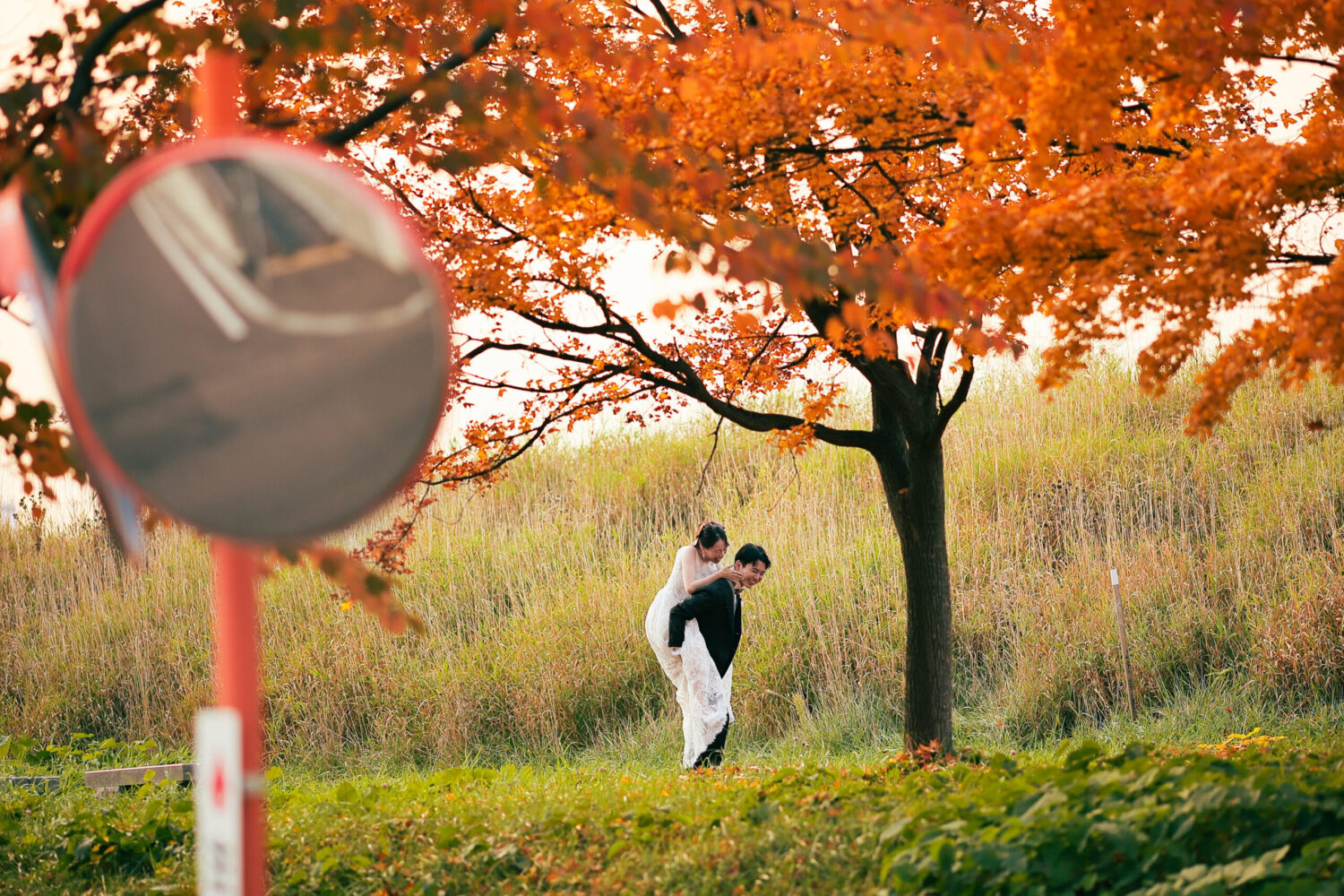 春には桜の木々がお2人の幸せを囲む柔らかい雰囲気に𓂃𓈒𓏸 秋には、桜の木が紅葉へと変わり秋の象徴ともいえる 紅葉と撮影を同時にお楽しみいただけます◎