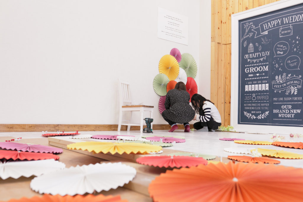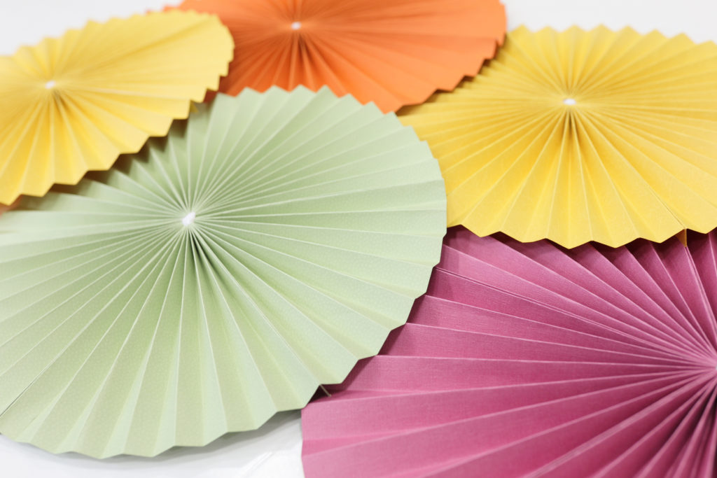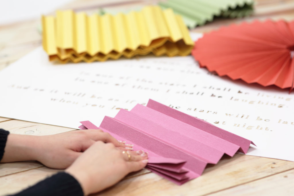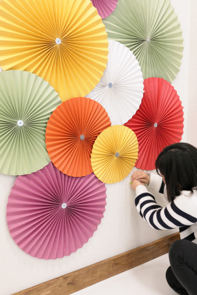 ”ペーパーファン”と呼ばれる、紙で作られた扇状(ファン)の装飾グッズをメイクさんがひとつひとつ完成させていきます!
