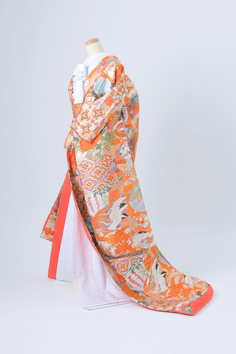大きな熨斗柄とたくさんのお花模様、平和や幸せの象徴とされている鳳凰がたっぷりと施されており、華やかさもしっかりとあるお着物です!