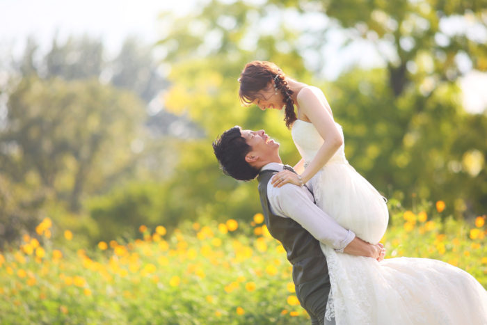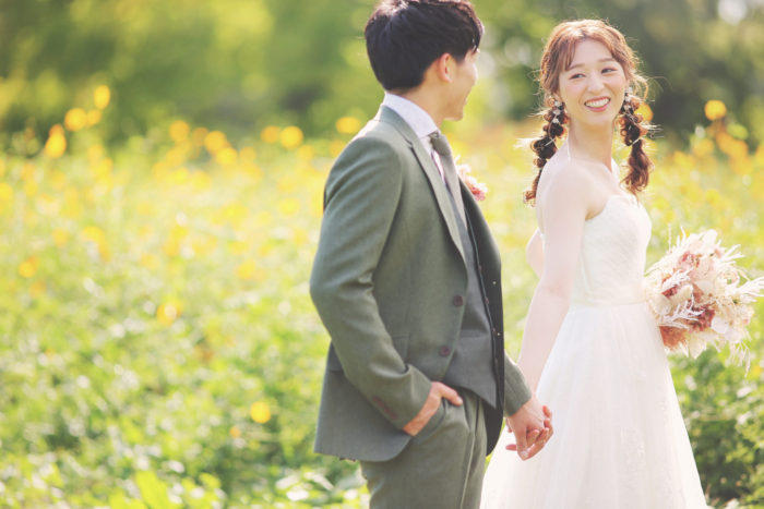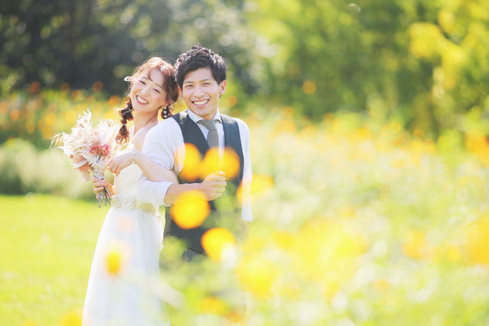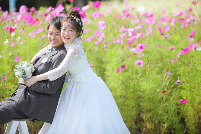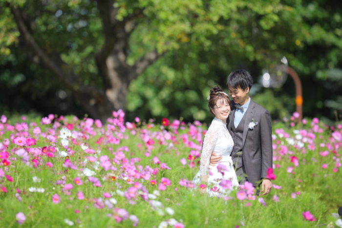 こちらにはイエローの元気で明るいお色が印象的なキバナコスモスも植えられています♪お2人の表情もパッと明るくなりますね♡(2020年10月3日撮影)