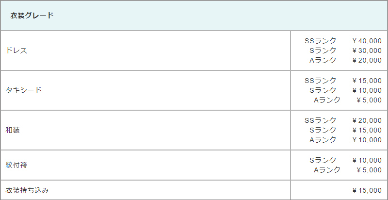 ~お衣装のグレードアップ表ははこちら~