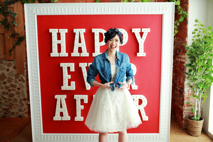 NEWスタジオにカフェセットができたので、イスに座ったときに靴が見えるようにミニドレスに!