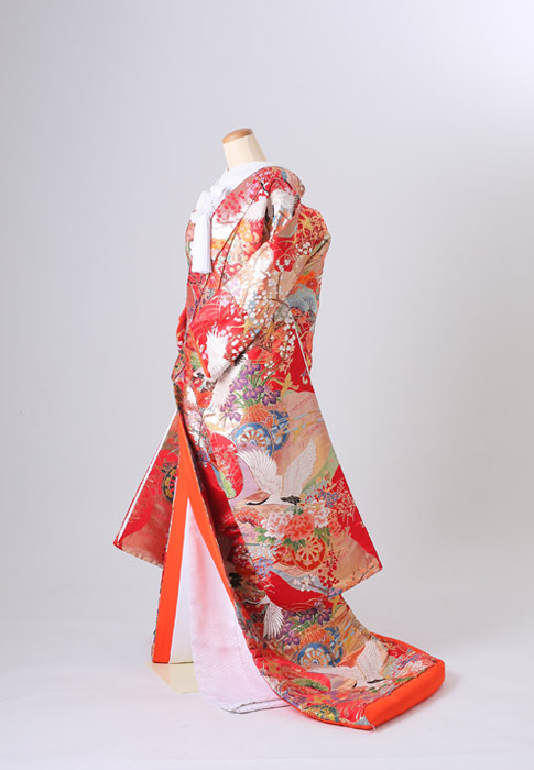 王道の赤色着物が新しく入荷しました!少し深みのある赤は落ち着いた印象を与え、全体的に文様が細かく入っているので小柄な体型のお嫁様にぴったり♡襟元や袖部分までしっかり刺繍が入っている豪華なイメージのお着物です!
